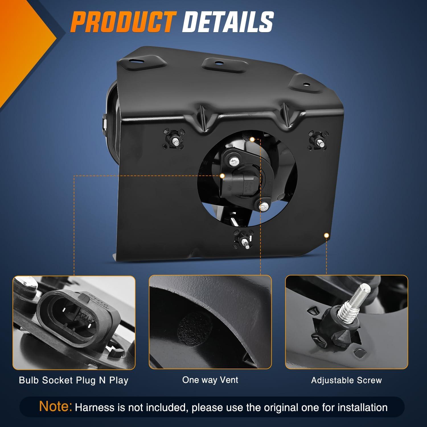 Tough and Durable: The well-sealed fog light can prevent moisture or dust from entering the inside of fog lights in all weathers, to ensure excellent weather resistance, and impact resistance. The superior glass lens features higher transmittance, UV and heatresistance, and OEM grade housing is designed to withstand all kinds of weather and terrain. Perfect for replacing broken stock fog lights.