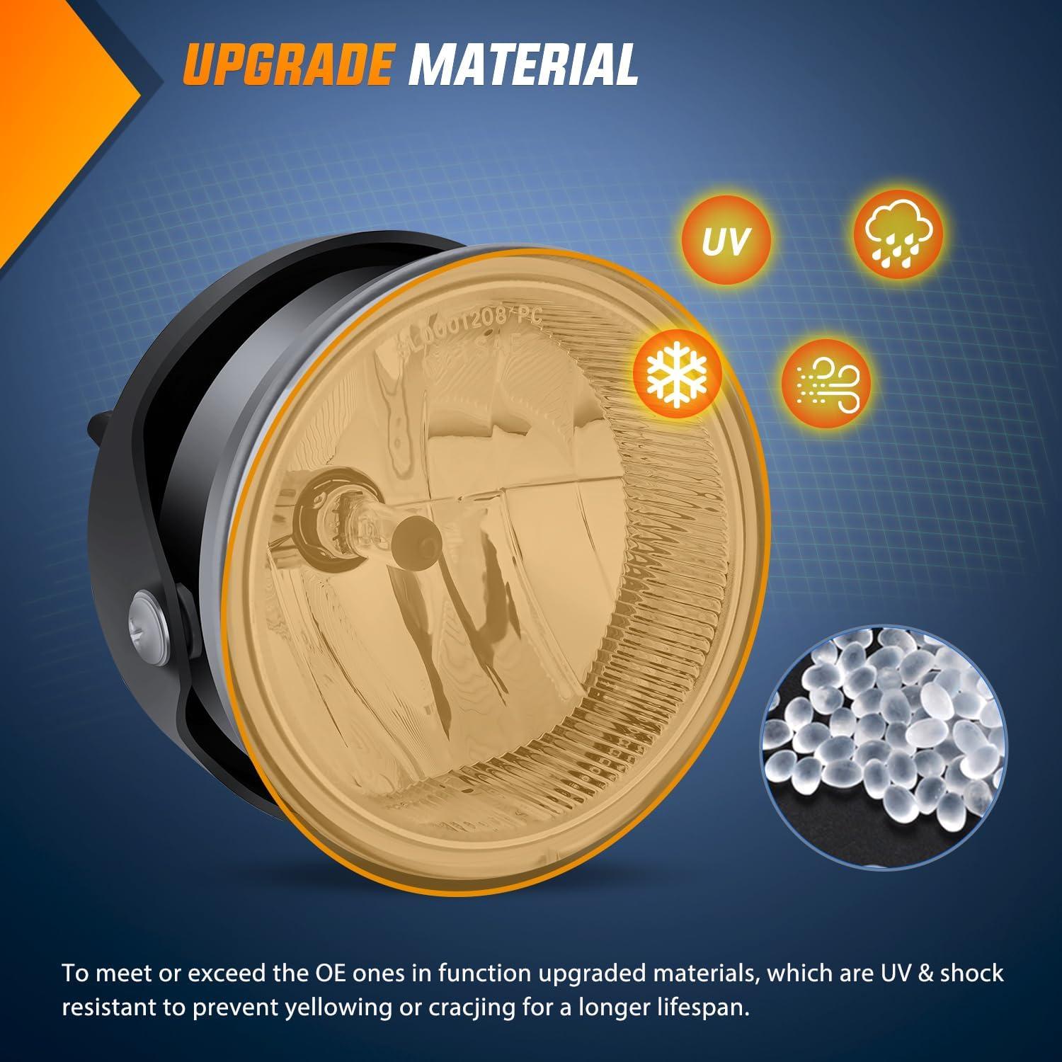 Tough and Durable: The well-sealed fog light can prevent moisture or dust from entering the inside of fog lights in all weathers, to ensure excellent weather resistance, and impact resistance. The superior glass lens features higher transmittance, UV and heatresistance, and OEM grade housing is designed to withstand all kinds of weather and terrain. Perfect for replacing broken stock fog lights.