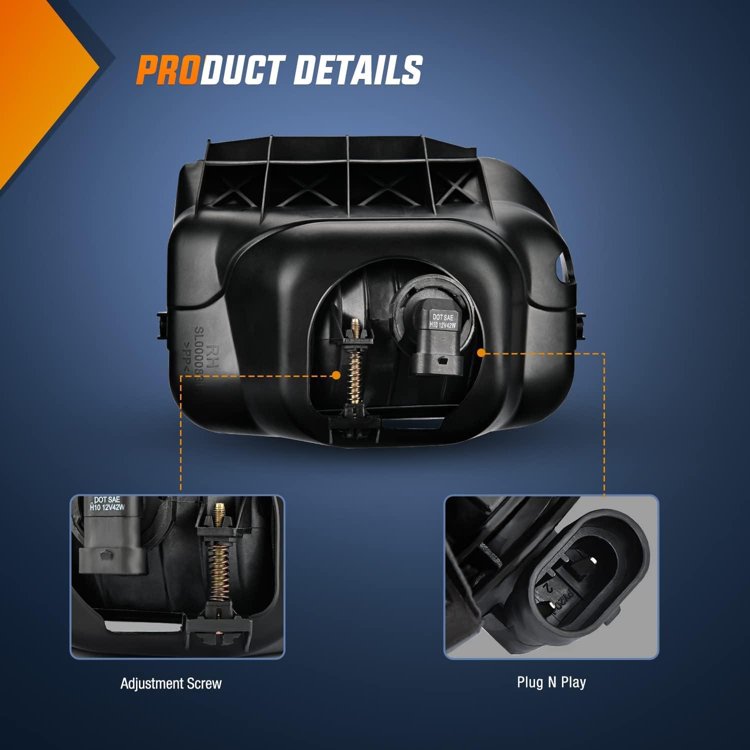 Tough and Durable: The well-sealed fog light can prevent moisture or dust from entering the inside of fog lights in all weathers, to ensure excellent weather resistance, and impact resistance. The superior glass lens features higher transmittance, UV and heatresistance, and OEM grade housing is designed to withstand all kinds of weather and terrain. Perfect for replacing broken stock fog lights.