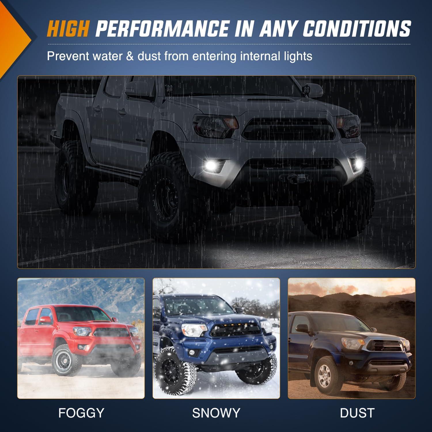 Excellent Visibility: 3300K clear light is more penetrating. Our fog lights provide clearer vision for driving in rainy, foggy, snowy, and dusty weather conditions. Nilight fog light can help you to see the road ahead and be noticed by the oncoming drivers and passersby through the dense fog. Get better visibility and enjoy safe and comfortable driving with our fog lights.