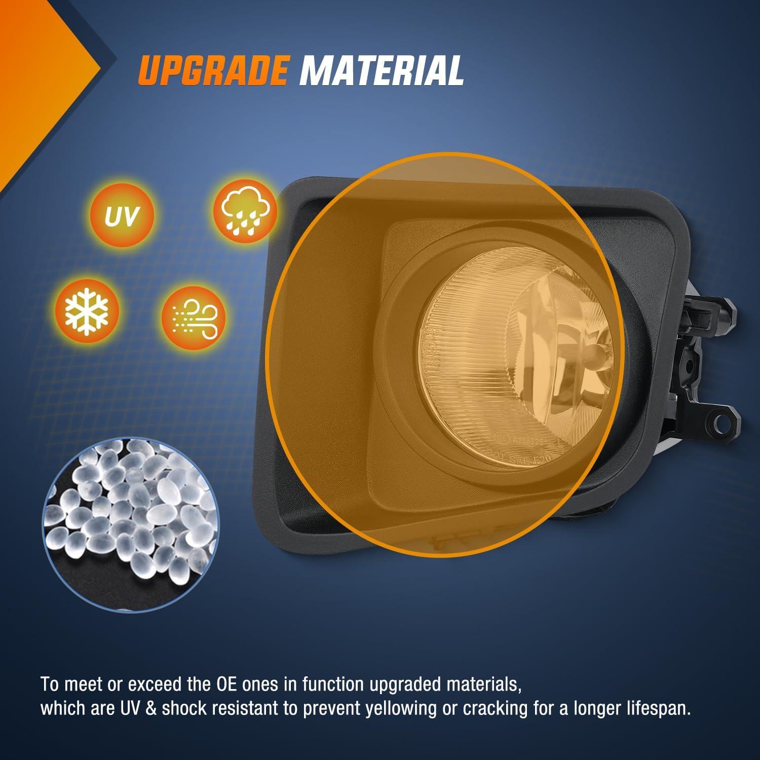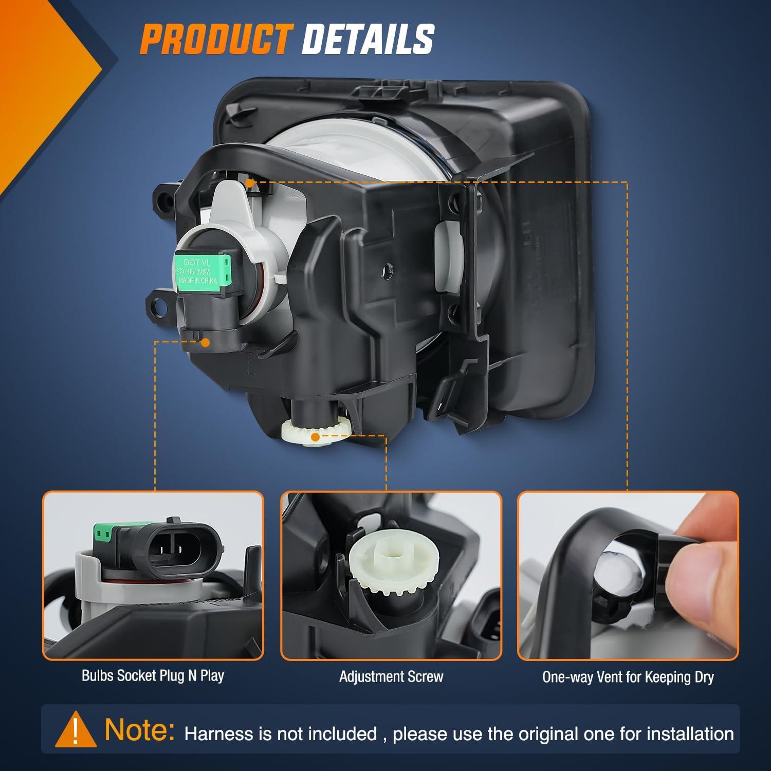 Tough and Durable: The well-sealed fog light can prevent moisture or dust from entering the inside of fog lights in all weathers, to ensure excellent weather resistance, and impact resistance. The superior glass lens features higher transmittance, UV and heatresistance, and OEM grade housing is designed to withstand all kinds of weather and terrain. Perfect for replacing broken stock fog lights.