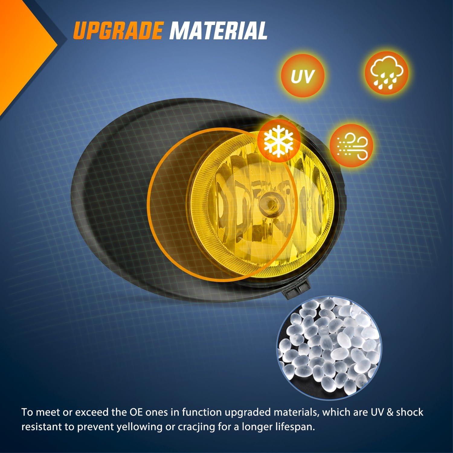 Nilight Fog Light Assembly Compatible with 2007 2008 2009 2010 2011 2012 2013 Toyota Tundra 2008-2011 Toyota Sequoia w/Metal Bumper Model Yellow Lens Driver and Passenger Side