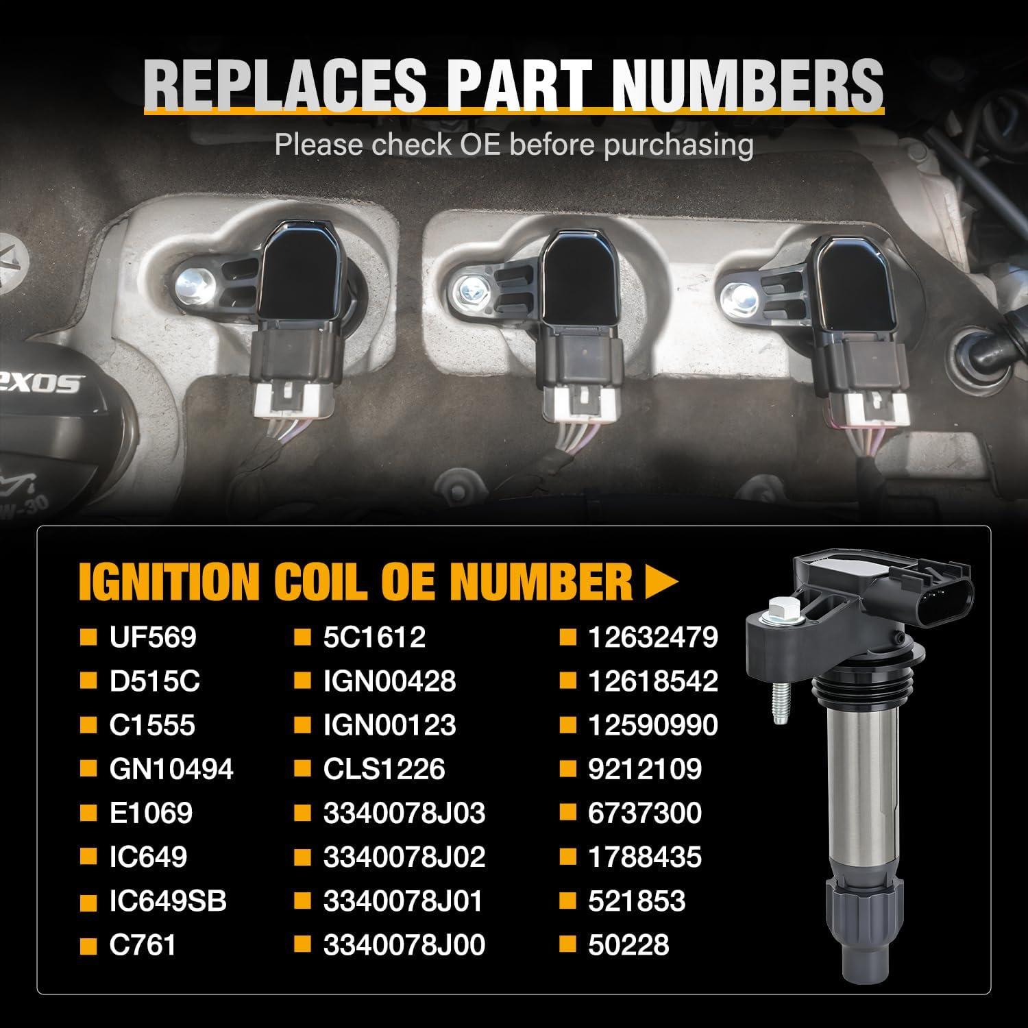 REPLACES PART NUMBERS: UF247, UF315, C1249, 5C1074, UF-247, UF-315, E864, 52-1646, IC372, IC445, 94859441, 94859442, 6731300, 90919-02239, 90919-12002 (Please make sure of the OE number, the ignition coils interface pin quantity and interface type before purchasing)