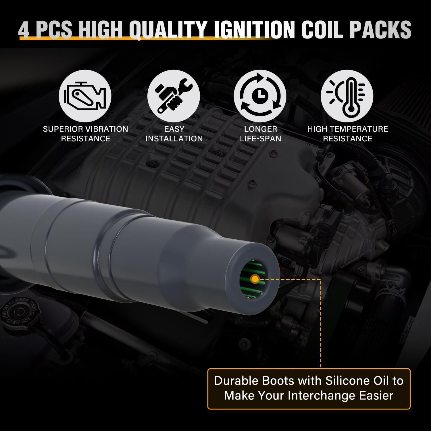 OEM QUALITY & LONG LIFESPAN: Adopting high-quality copper wire imported from Germany and wire coatin, Nilight ignition coils has highly shock-resistant and long lifespan. In addition the silicone rubber boot can withstand environments as low as -40°F and even as high as 302°F to ensure excellent insulation