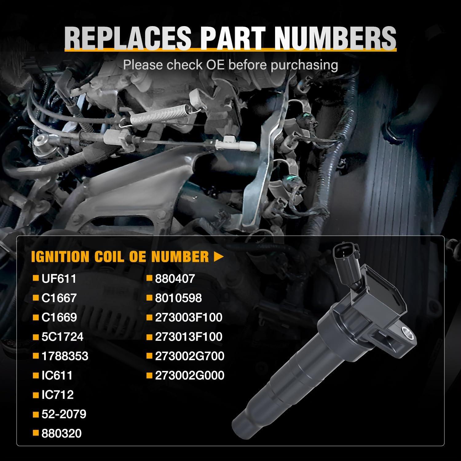 REPLACES PART NUMBERS: UF247, UF315, C1249, 5C1074, UF-247, UF-315, E864, 52-1646, IC372, IC445, 94859441, 94859442, 6731300, 90919-02239, 90919-12002 (Please make sure of the OE number, the ignition coils interface pin quantity and interface type before purchasing)