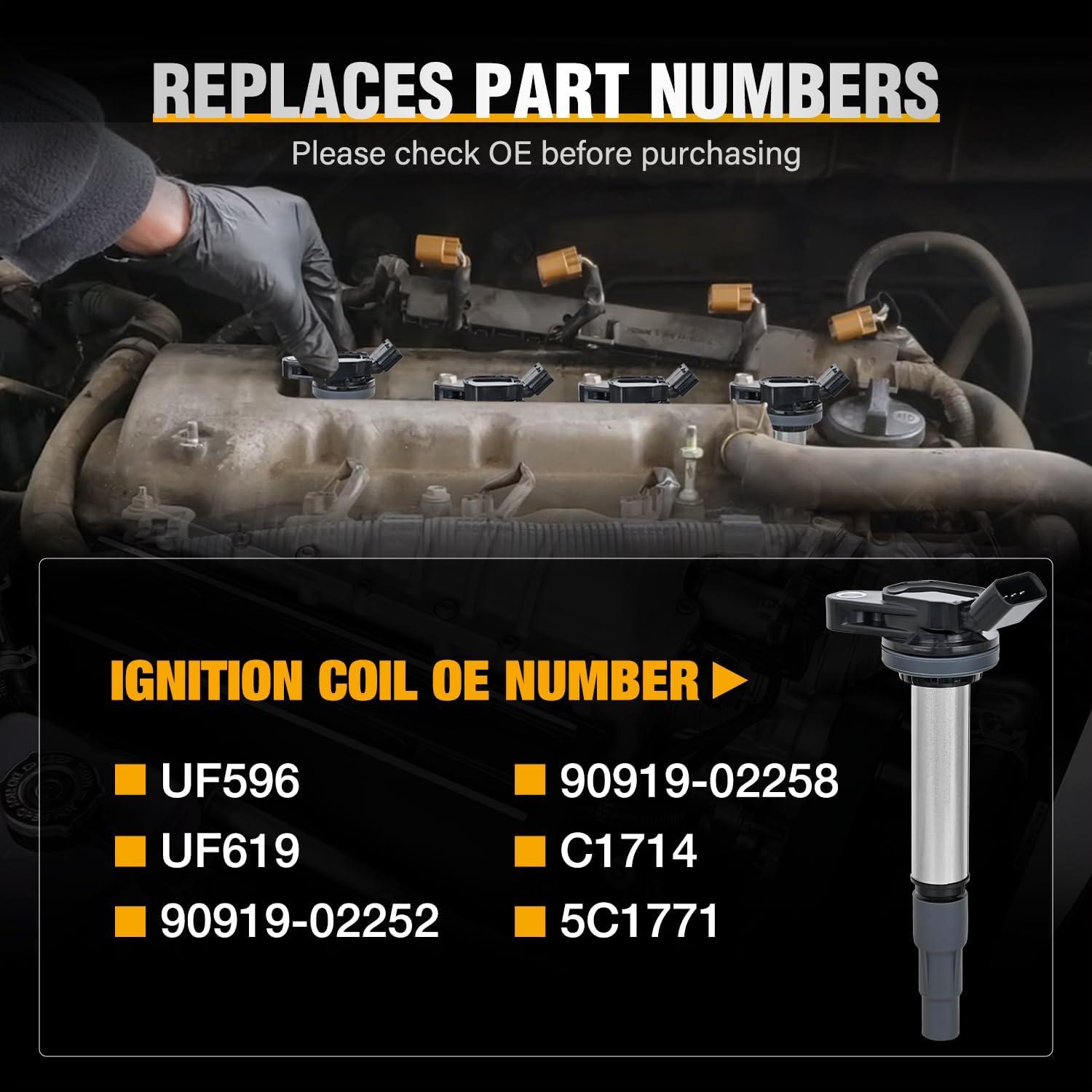 REPLACES PART NUMBERS: UF247, UF315, C1249, 5C1074, UF-247, UF-315, E864, 52-1646, IC372, IC445, 94859441, 94859442, 6731300, 90919-02239, 90919-12002 (Please make sure of the OE number, the ignition coils interface pin quantity and interface type before purchasing)