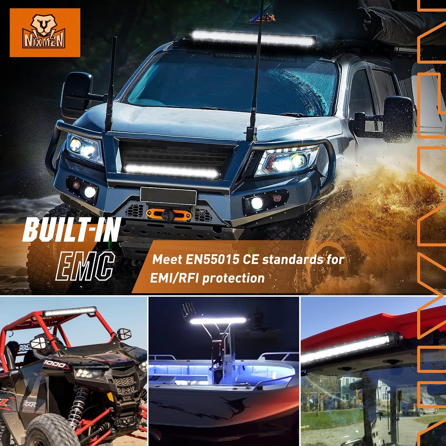 【EMI/RFI Protection】Light pods are built-in EMC that meets EN55015 CE standards, limiting the generation of EMI/RFI interference. Provides better protection for both internal electronic components in lighting and also external objects like a radio receiver