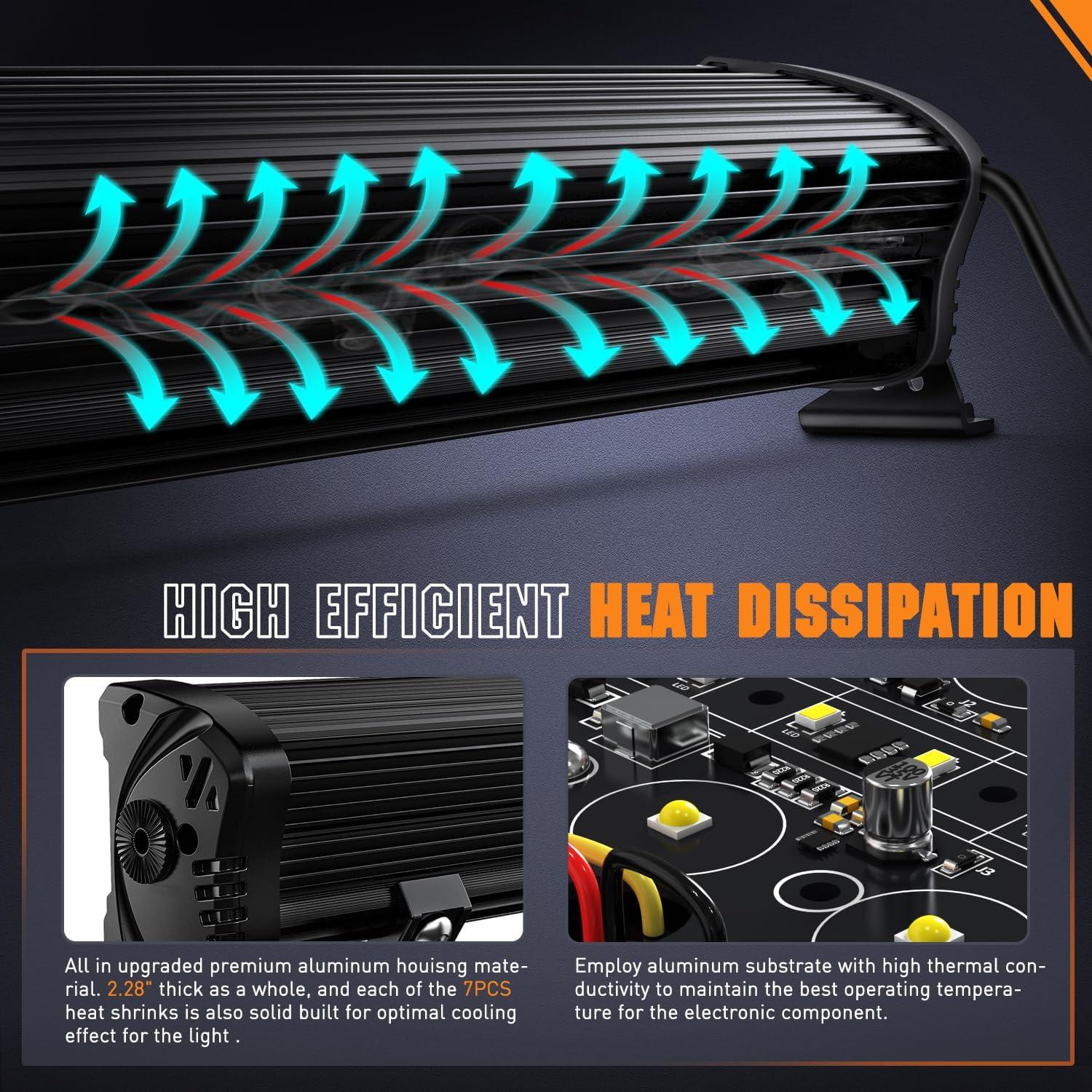 【Premium Durability】 IP68 waterproof rated, powerful to withstand any harsh environments and weather conditions. Solid built in quality 6063 and ADC12 aluminum housing and thick heat shrink shell, efficiently accelerate heat dissipation and maintain a safe temperature to ensure stable lighting output as well as lighting durability
