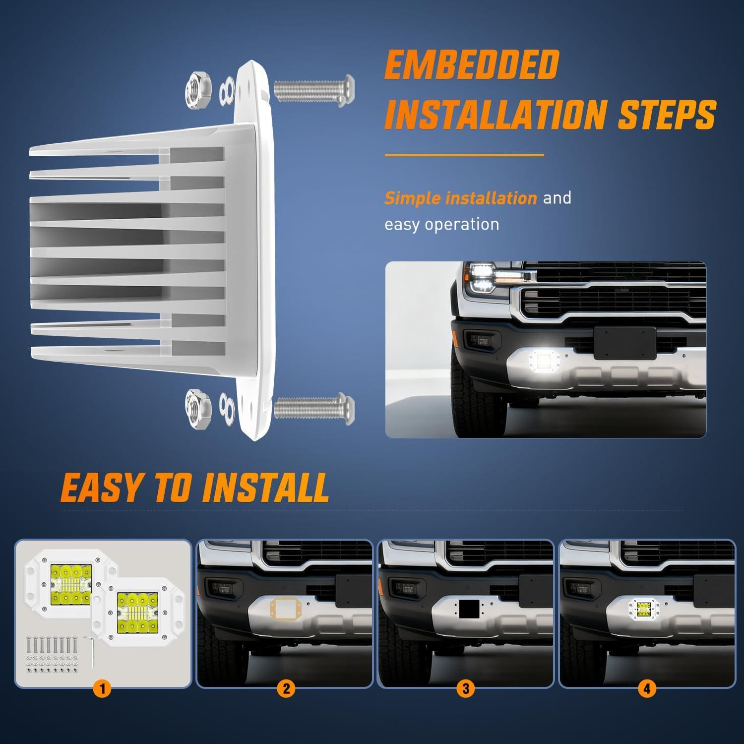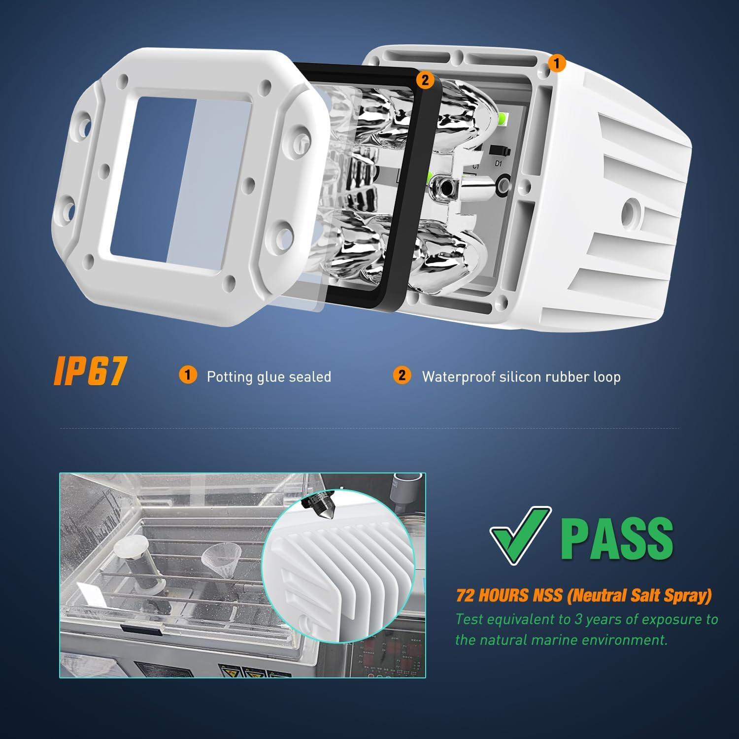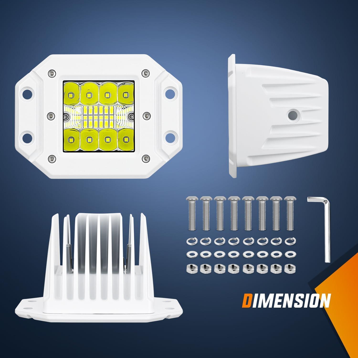 Multi-Purpose: The flush mount lights can be perfectly mounted on rear bumper or grill to work as backup or reverse light and fog light on trucks, tractors, off-road, pick up, SUV, ATV, UTV, golf cart. Also widely used in fishing boats, pontoon boats, yachts, sailboats, house boats, rowboats, paddle boats