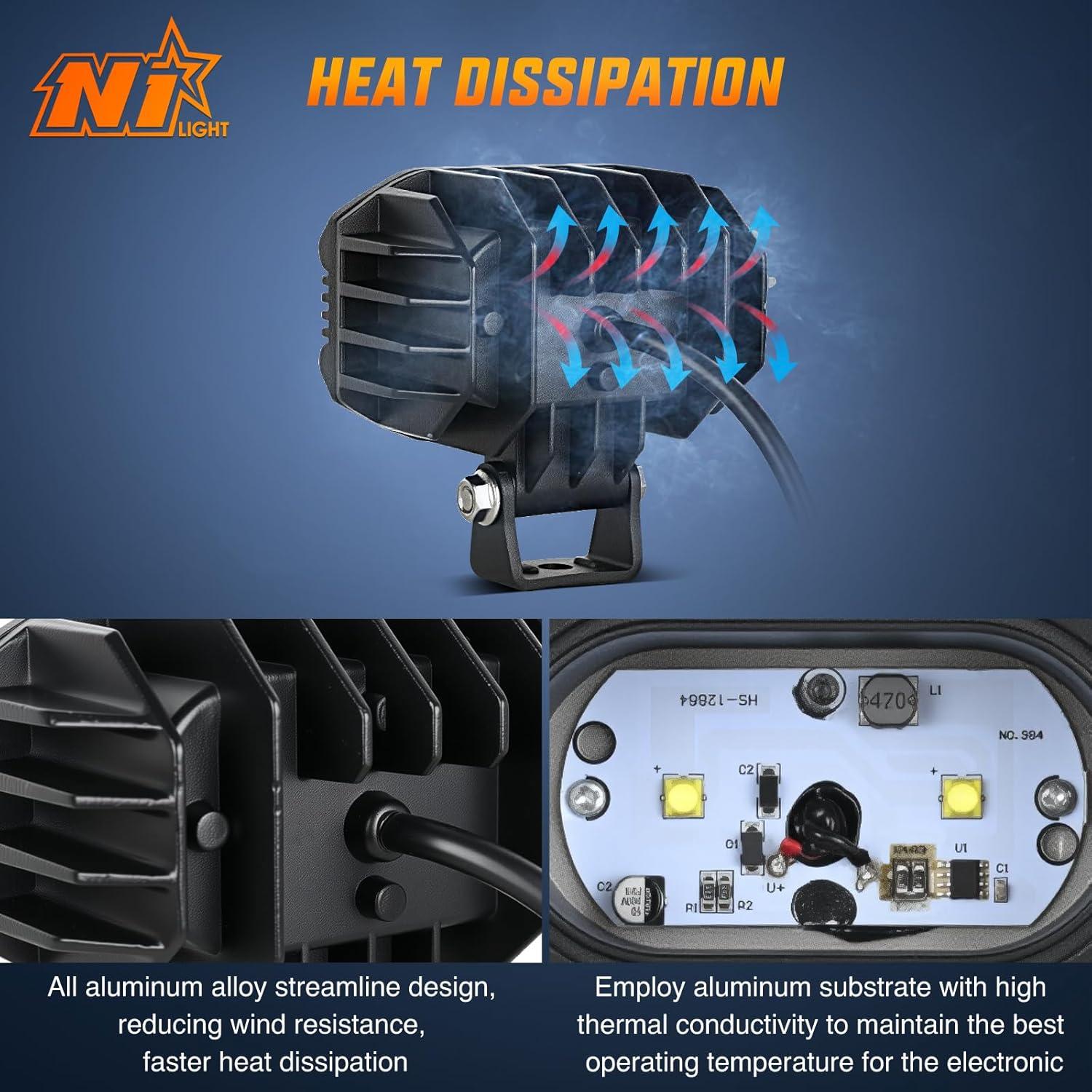 Powerful Flood Beam: Wide coverage, can easily illuminate every corner of the road, and improve your visibility in any conditions; Upgrade your car lighting with Nilight lights, don't just see the road, go conquer it
