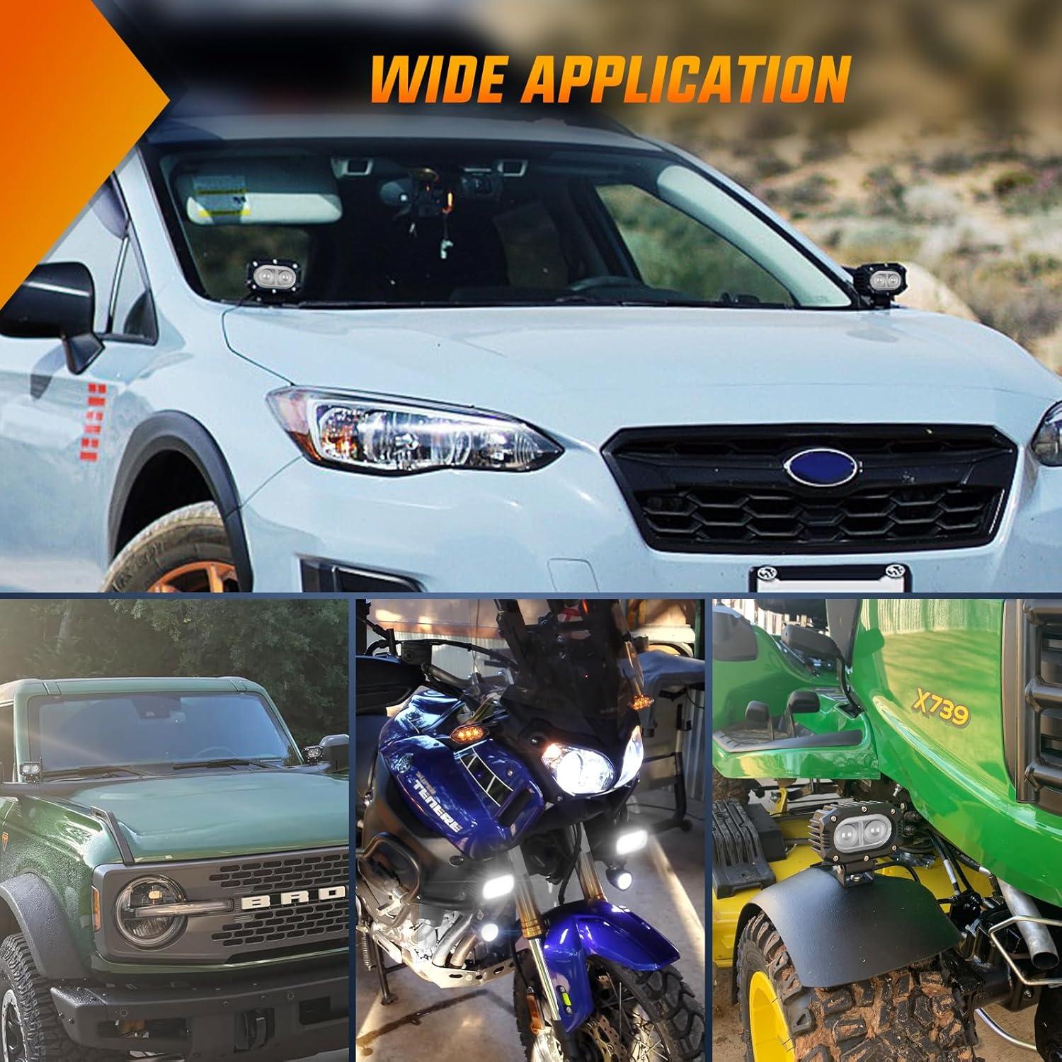 Wide Application: Can be widely used as auxiliary lights such as led driving light, led fog light, offroad lights for motorcycle bicycle dirt bike SUV ATV Truck Jeep Boat Tractor Forklift etc