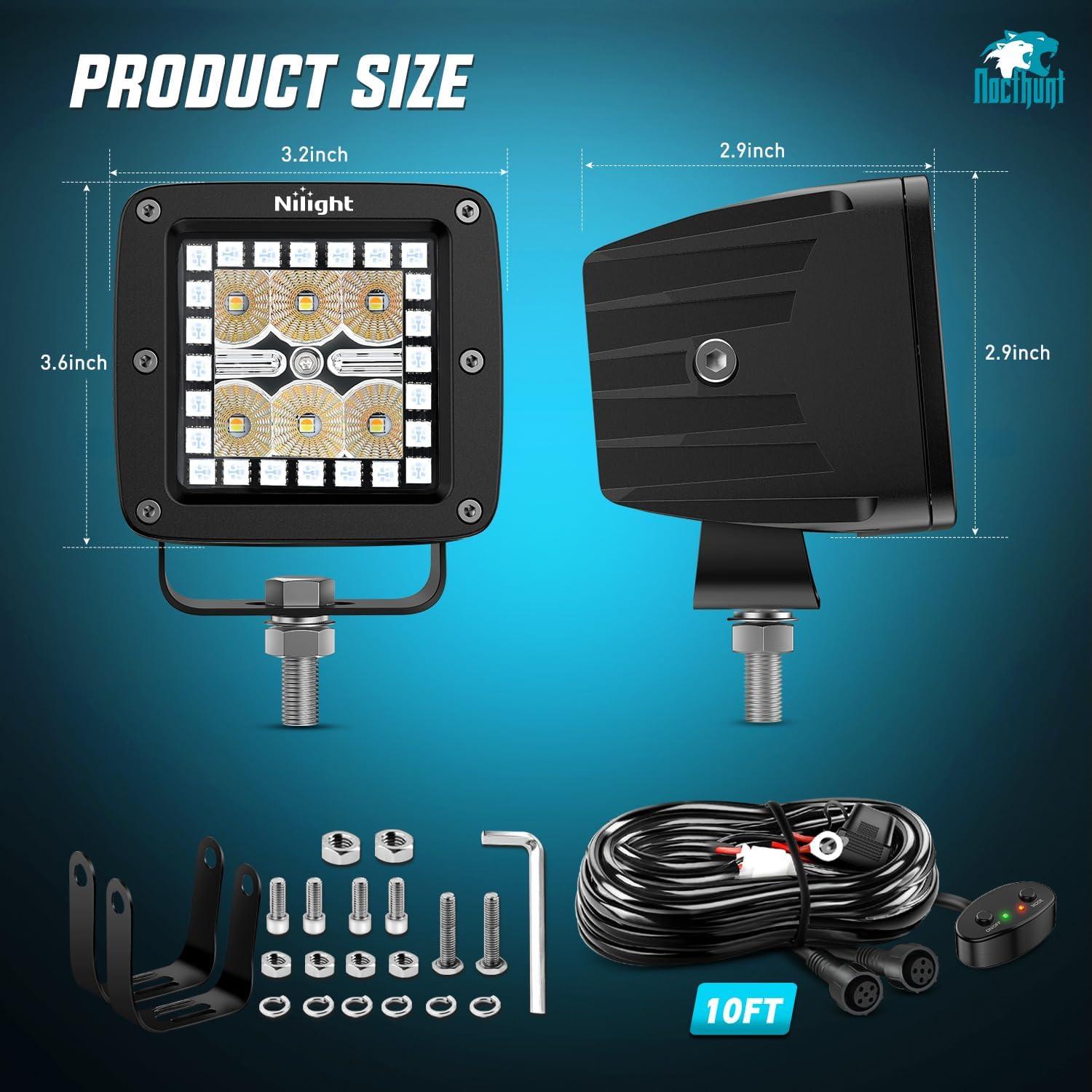 imageNilight LED Pods 3 Inch 18W Cube Flood Offroad Work Light with RGB Halo Strip Multi Chasing Flash Strobe Mode APP amp Remote Control IP67 Waterproof for Truck Pickup Golf Cart SUV ATV UTV 4x4 Van CamperAmberWhite 6 Modes