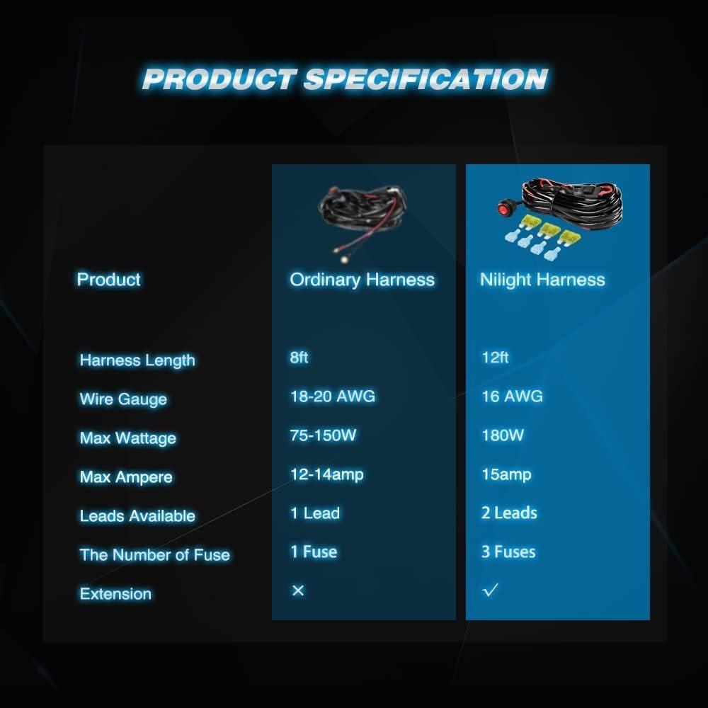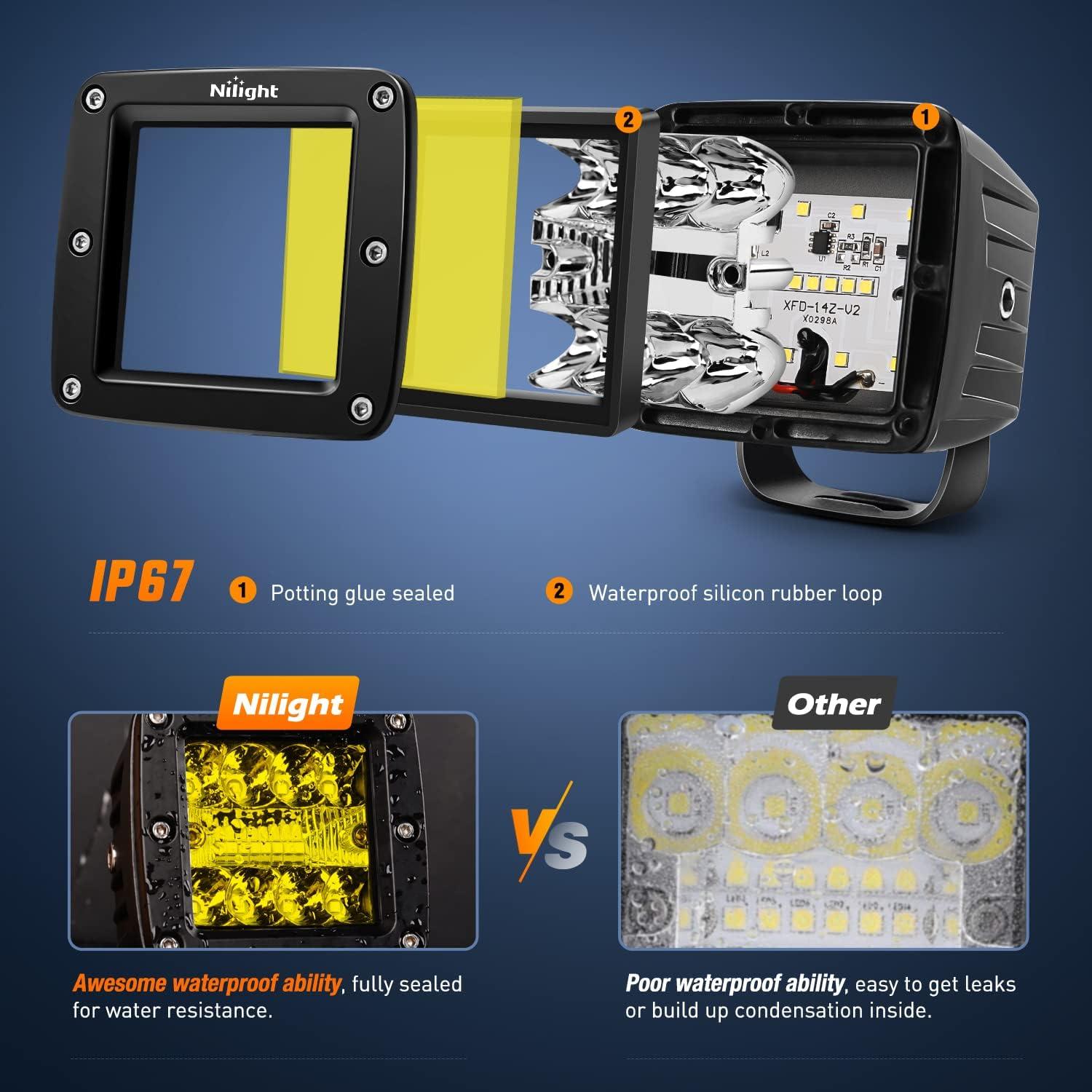 imageNilight 7 Inch LED Offroad Driving Lights High Low Beam 2 PCS 80W Round White Light Side Shooter Spot Flood Fog Light Pod w 16 AWG DT Connector Wiring Harness Kit for Jeep Truck ATV UTV SUVAmber