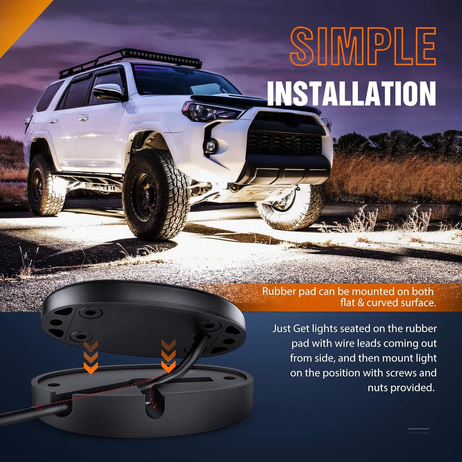 Easy Installation: Get lights seated on rubber pads, with wires coming out from the side, and then mount light on the position with screws and nuts provided. Rubber pad works on both flat and curved surface