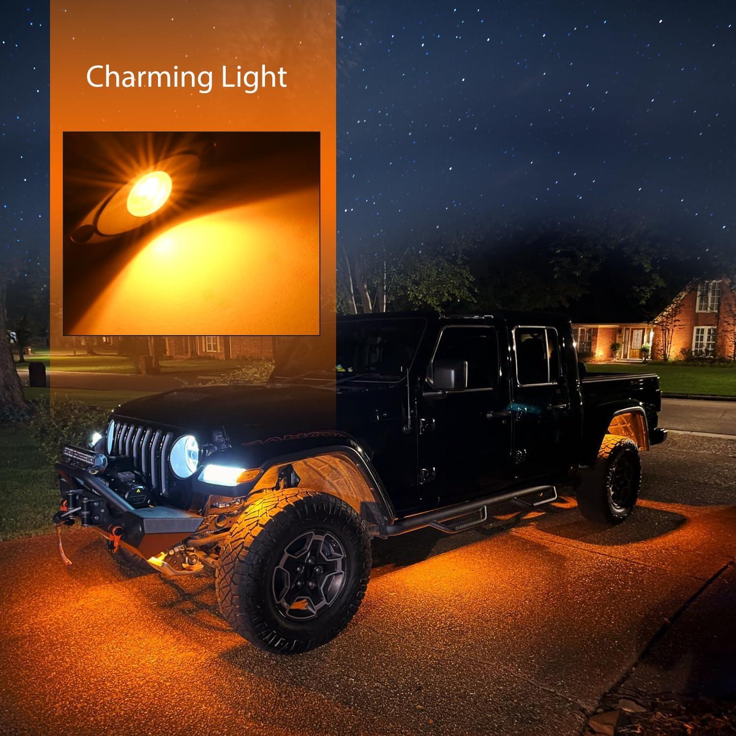 Nilight LED Rock Light 6PCS Pink Purple Underglow Wheel Well Fender Pods Waterproof Exterior Underbody Roof Rack Side Lamps for 12V 24V Car Truck Pickups ATV UTV SUV Motorcycle Boat(Amber)