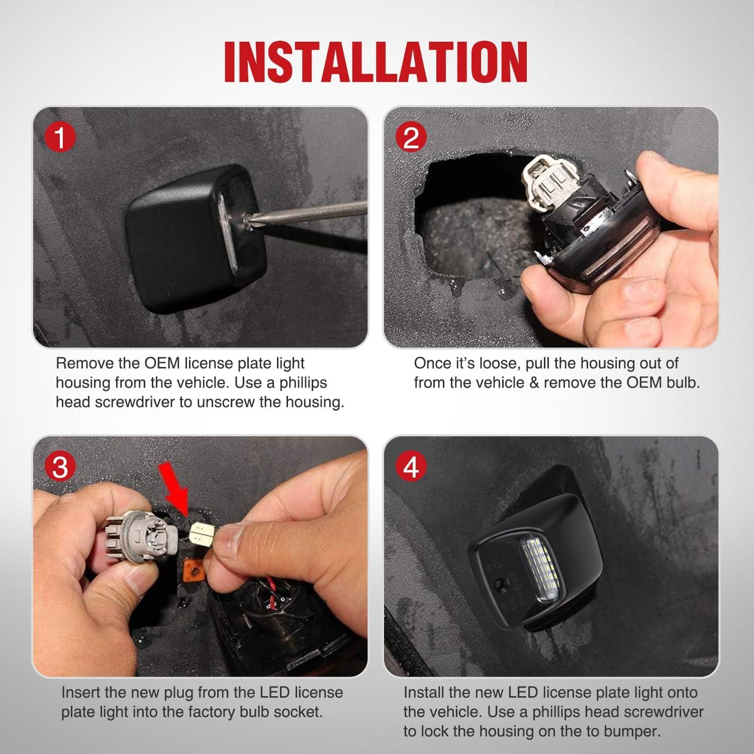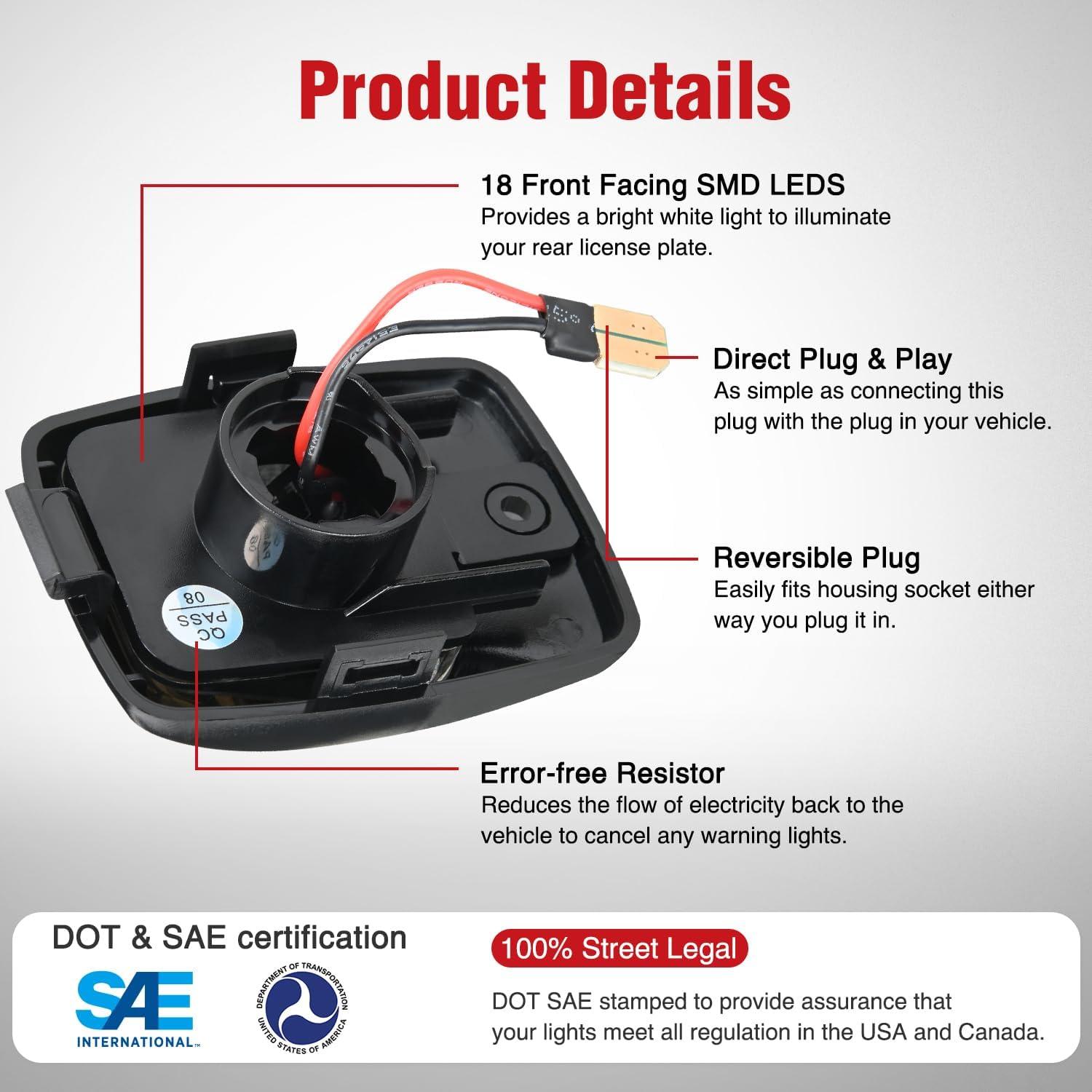 DOT Compliance: Our license plate lights are SAE and DOT certified to meet federal and international standards. Plug and play, OEM perfect fit, can be directly replaced without modification. Replaces Original (OE) Part number: 81270-35090, 81273-35130, 81270-35140, 81271-95J07, 81270-35120.