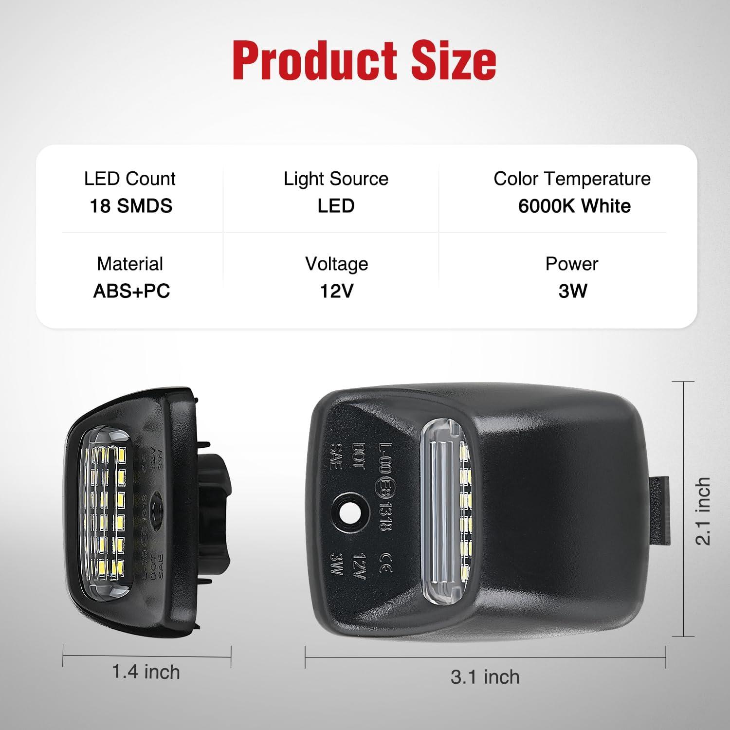 Tough and Durable: Made of high-quality PC lens and ABS plastic shell, lifespan more than 5500 hours. The entire license plate lamps led is IP67 waterproof, the well sealed license plate lamp can prevent moisture or dust from entering the inside of the lamp in any weather, ensuring excellent weather resistance and impact resistance.