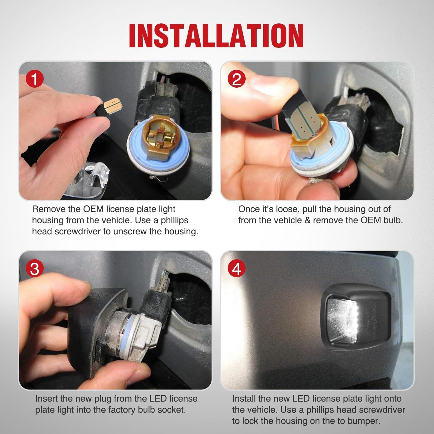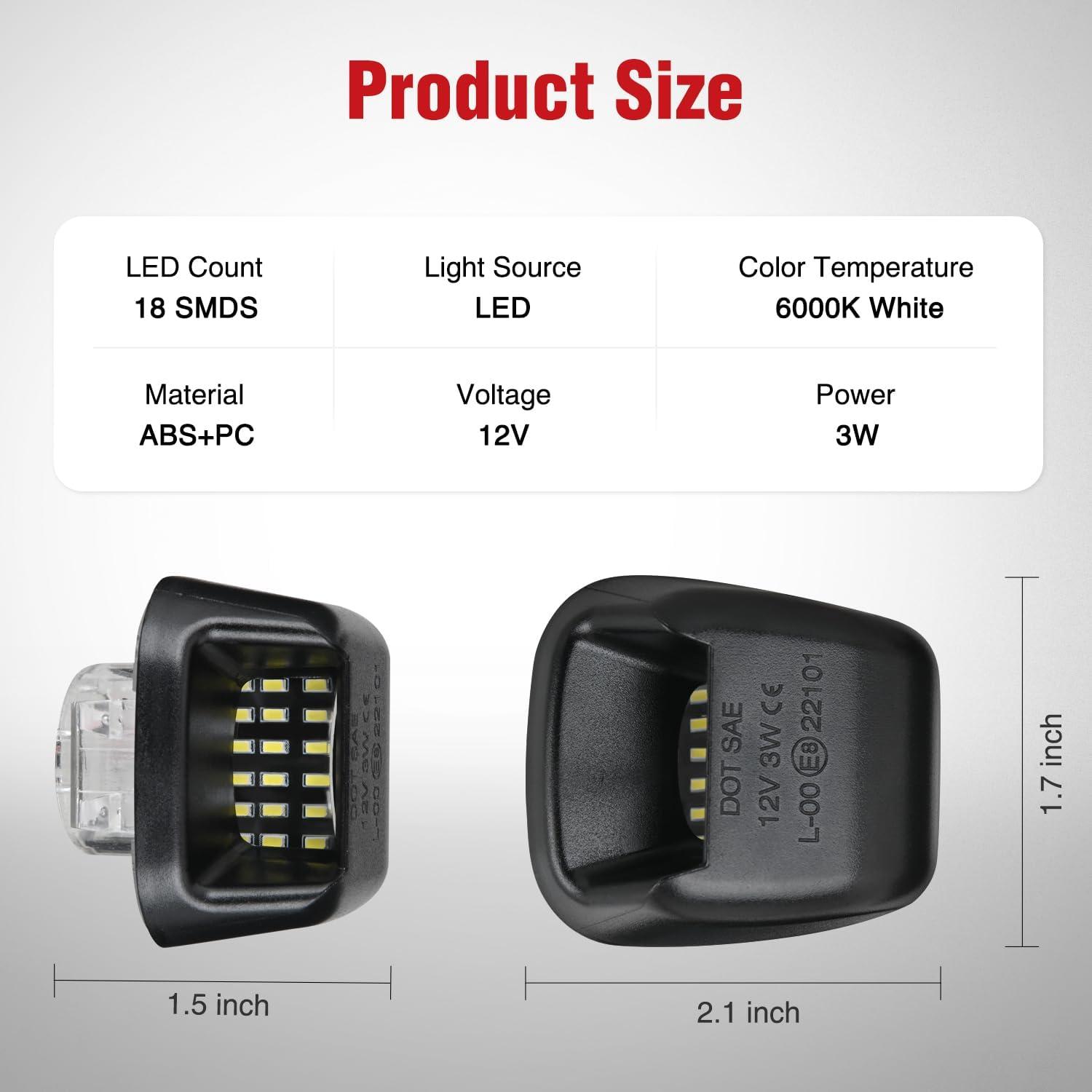 Packages Included: a pair of right and left side LED license plate lights.