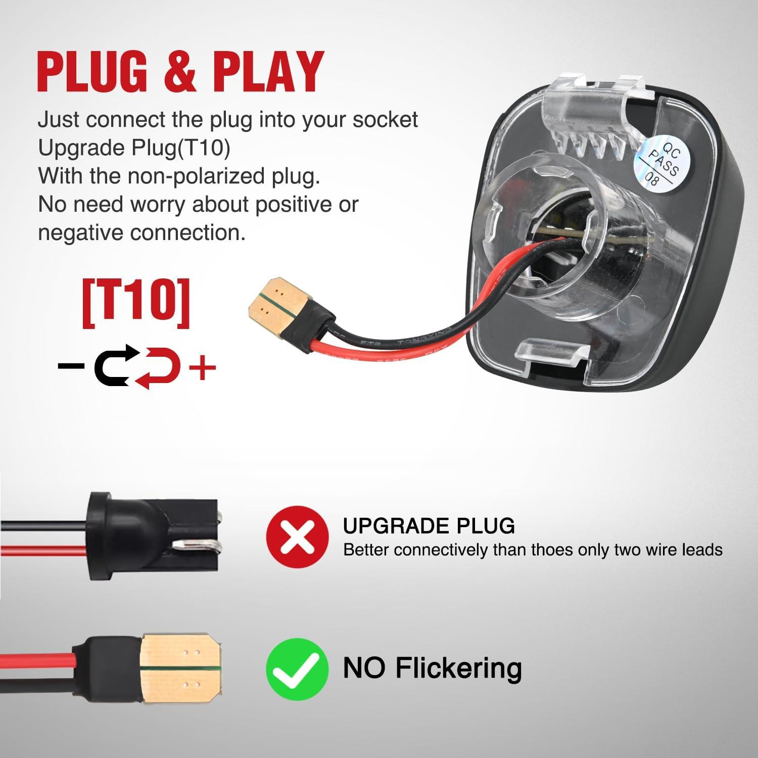 Tough and Durable: Made of high-quality PC lens and ABS plastic shell, lifespan more than 5500 hours. The entire license plate lamps led is IP67 waterproof, the well sealed license plate lamp can prevent moisture or dust from entering the inside of the lamp in any weather, ensuring excellent weather resistance and impact resistance.