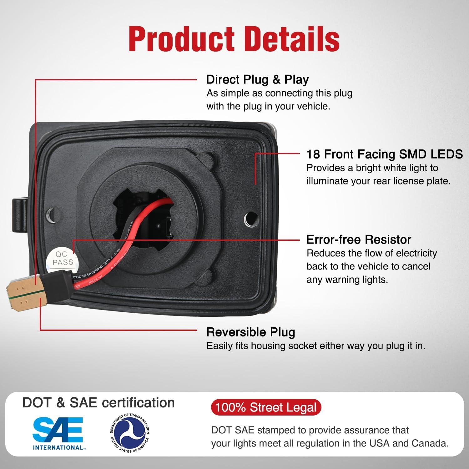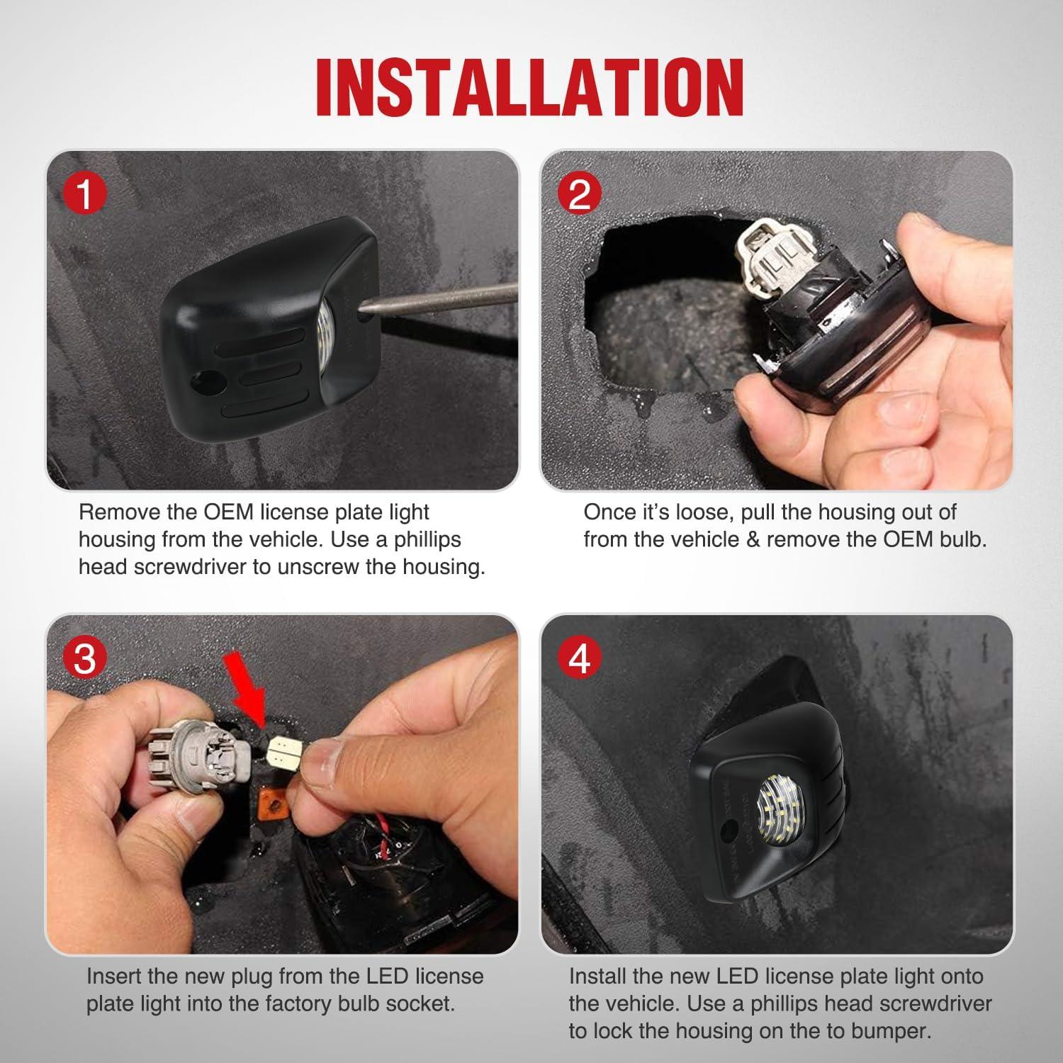 Packages Included: a pair of right and left side LED license plate lights.
