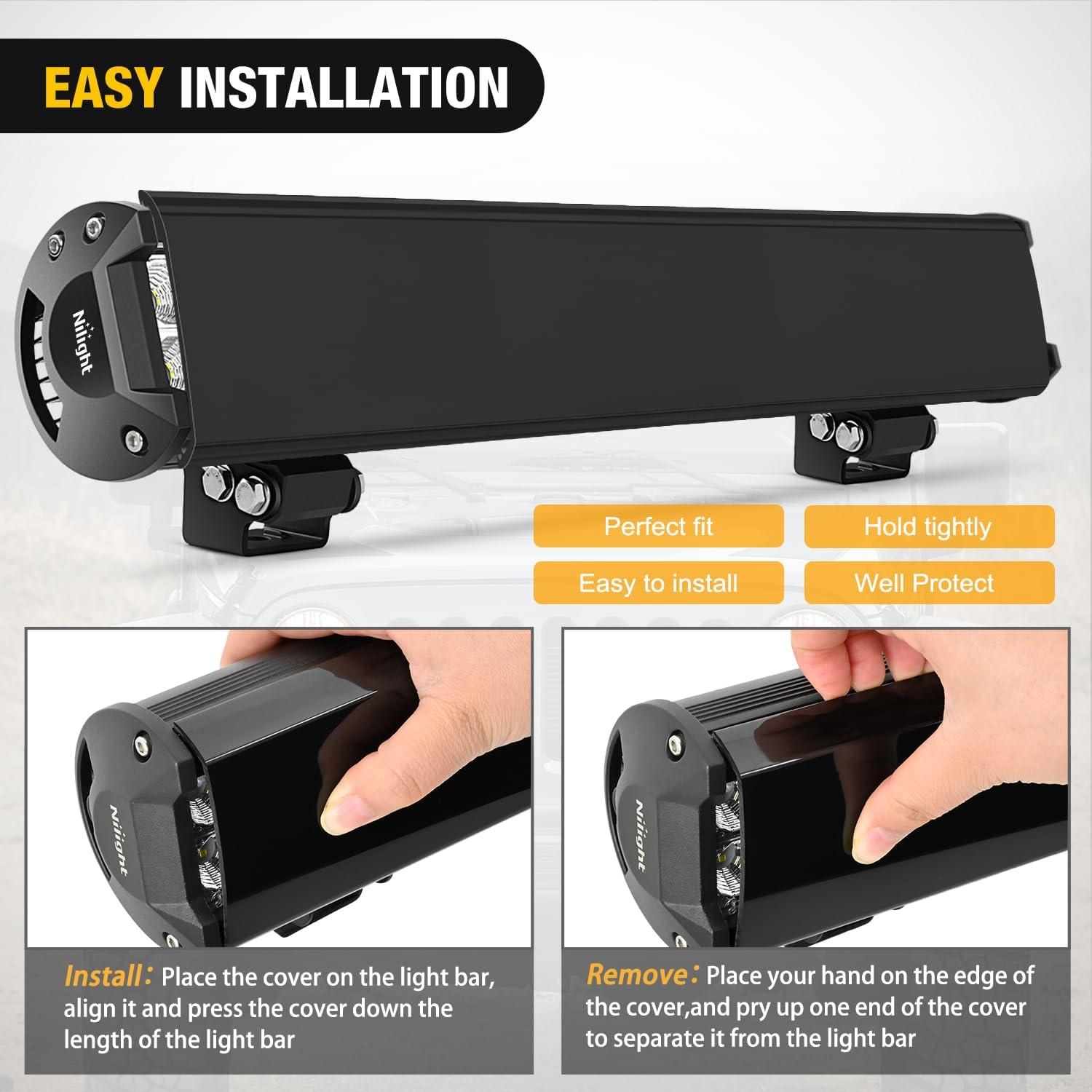 Easy Installation: With snap-on design, easy to install and remove,and can be firmly fasten to the light bar to prevent falling off due to severe vibration , allowing you to enjoy your off-road journey without any worries