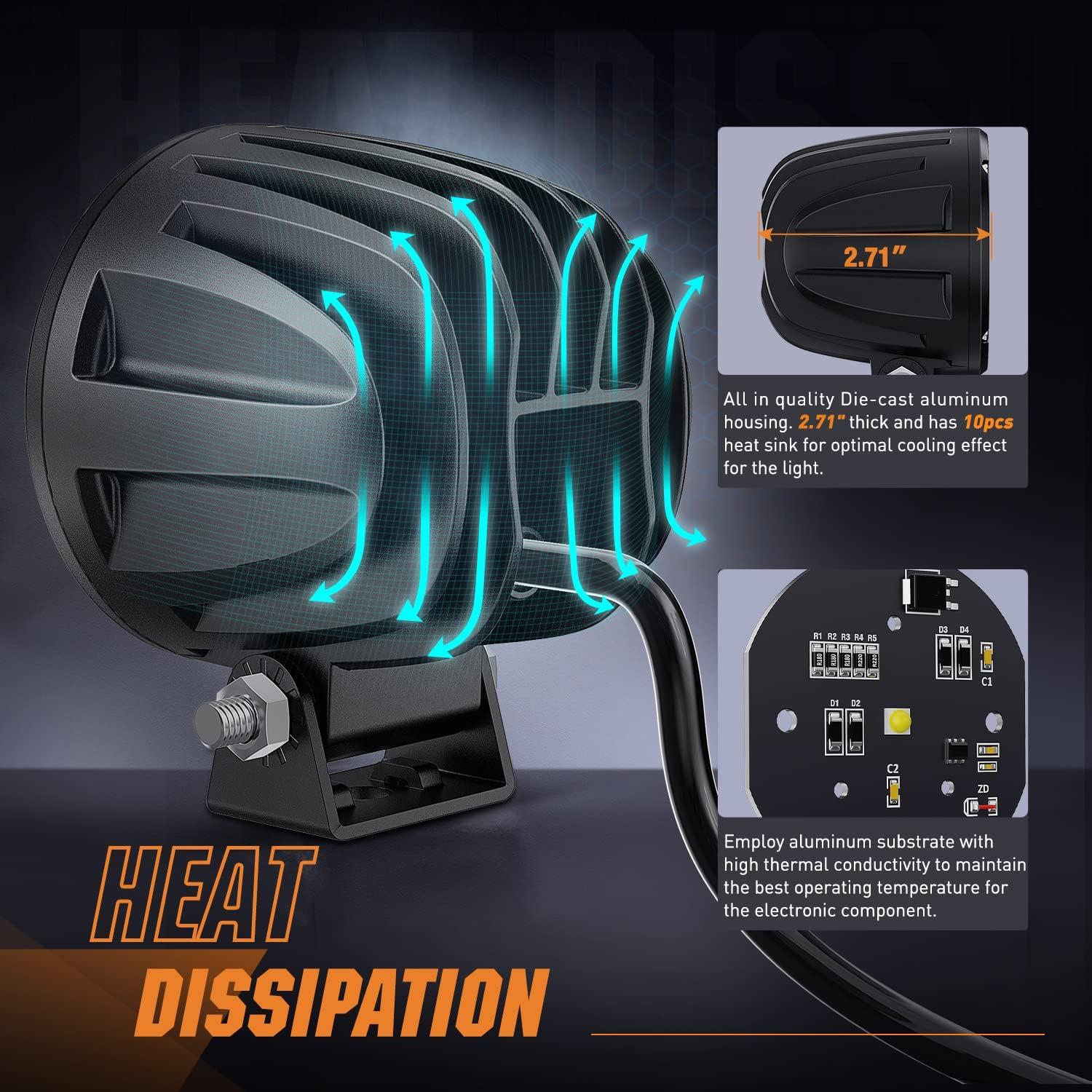 【Build To Last】: Compared with the traditional 3535 chip, our light pods employ top led chips that features higher lumen and quality built gold wire bonding, bringing 1600LM stable output to light up the entire way ahead. Gets you less light decay or dead leds, but a long lifespan 50,000+ hours