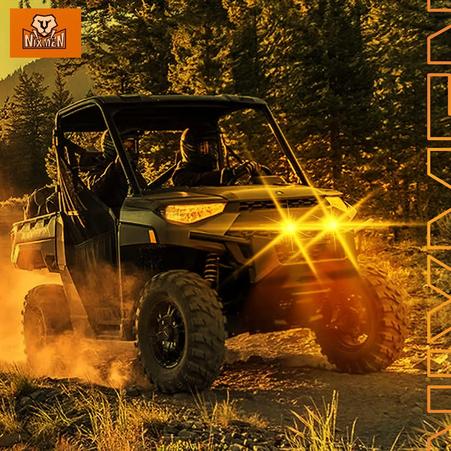 【BRIGHT AMBER FOG LIGHTS】: Employ top led chips, specially designed optical yellow lens and refractive cup, achieves a super focused 10°high intensity light beam, shoots a further distance at 453 Feet, providing you a more clearly and safe driving in foggy snowy, rainy weather, spot beam is focused but not scattered, prevent the fog/snow/dust from reflecting the light back into driver eyes