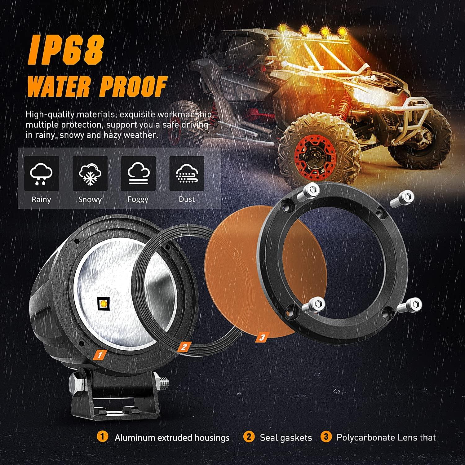 【High Quality】: Built in IP68 waterproof, powerful to withstand any harsh environments and weather conditions. Also lights are built-in EMC for EMI/RFI protection, resolve the issue of radio interference and flickering