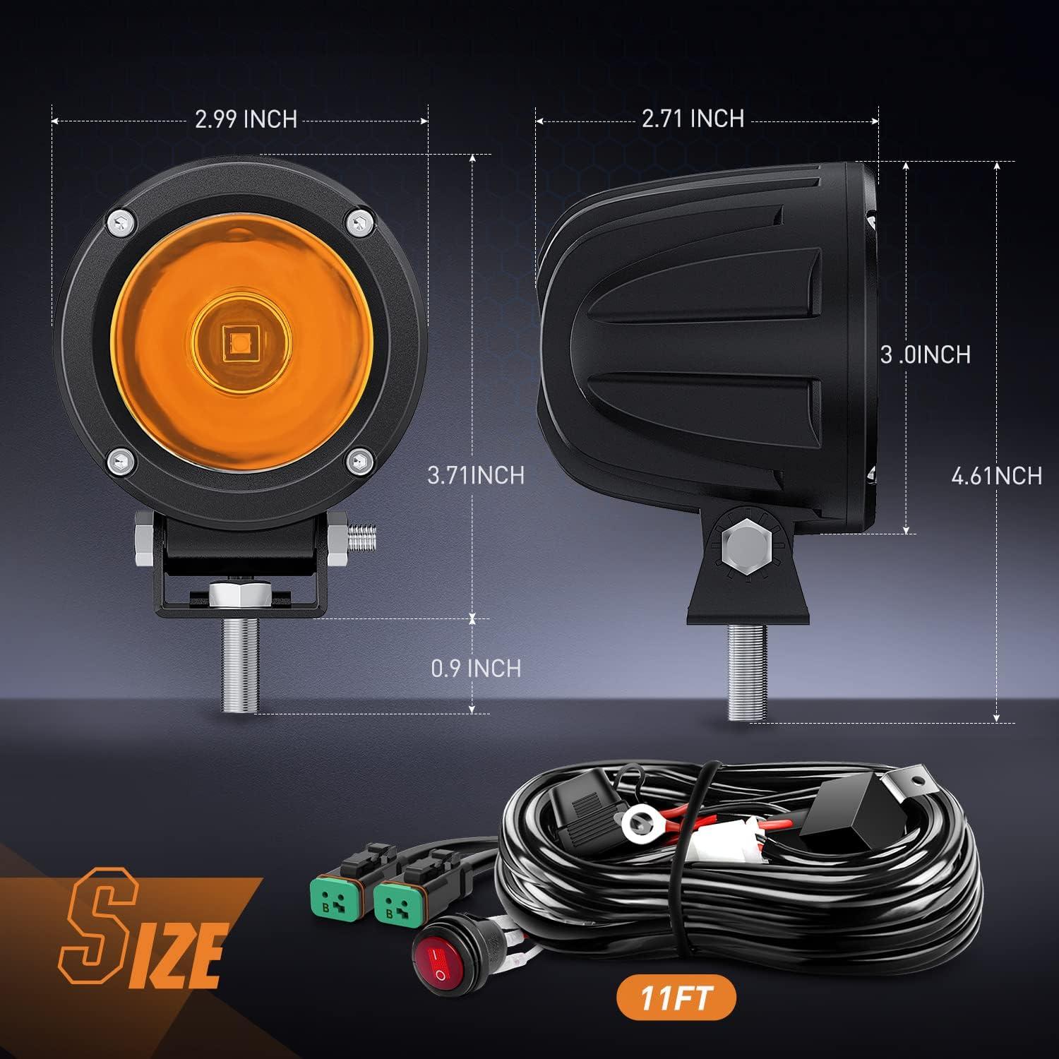 Nilight 3Inch Amber Round LED Offroad Auxiliary Light Pods w/ 18AWG DT Wiring harness Kit