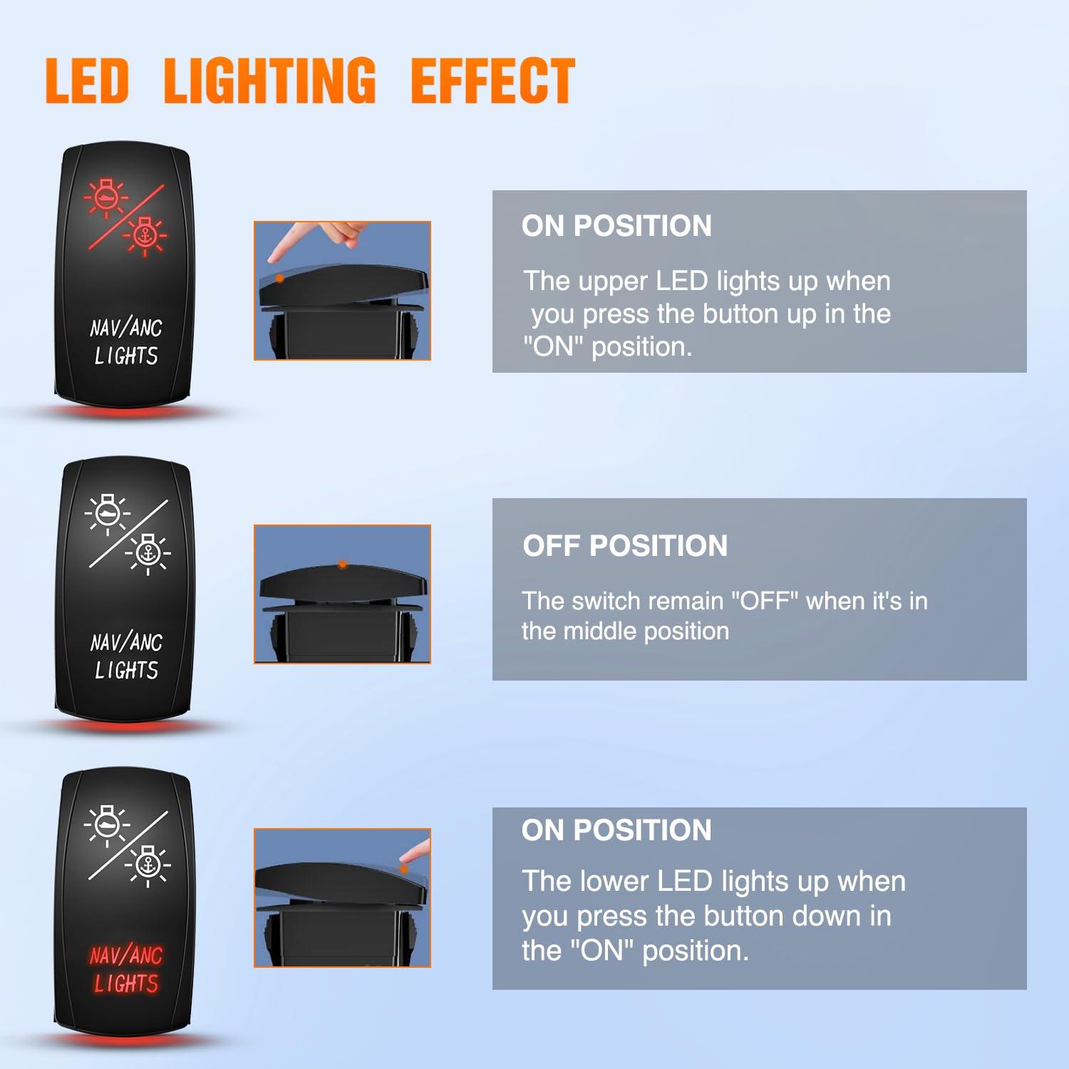 Wide Applications: Mainly used to controlling the navigation lights and anchor lights. 3 positions (ON -OFF-ON). Universal fit for Marine boats, Yachts, cars, RVs, SUVs, ATVs, UTVs, Cans, Buses, Trailers, rerunners, Campers, Caravans etc