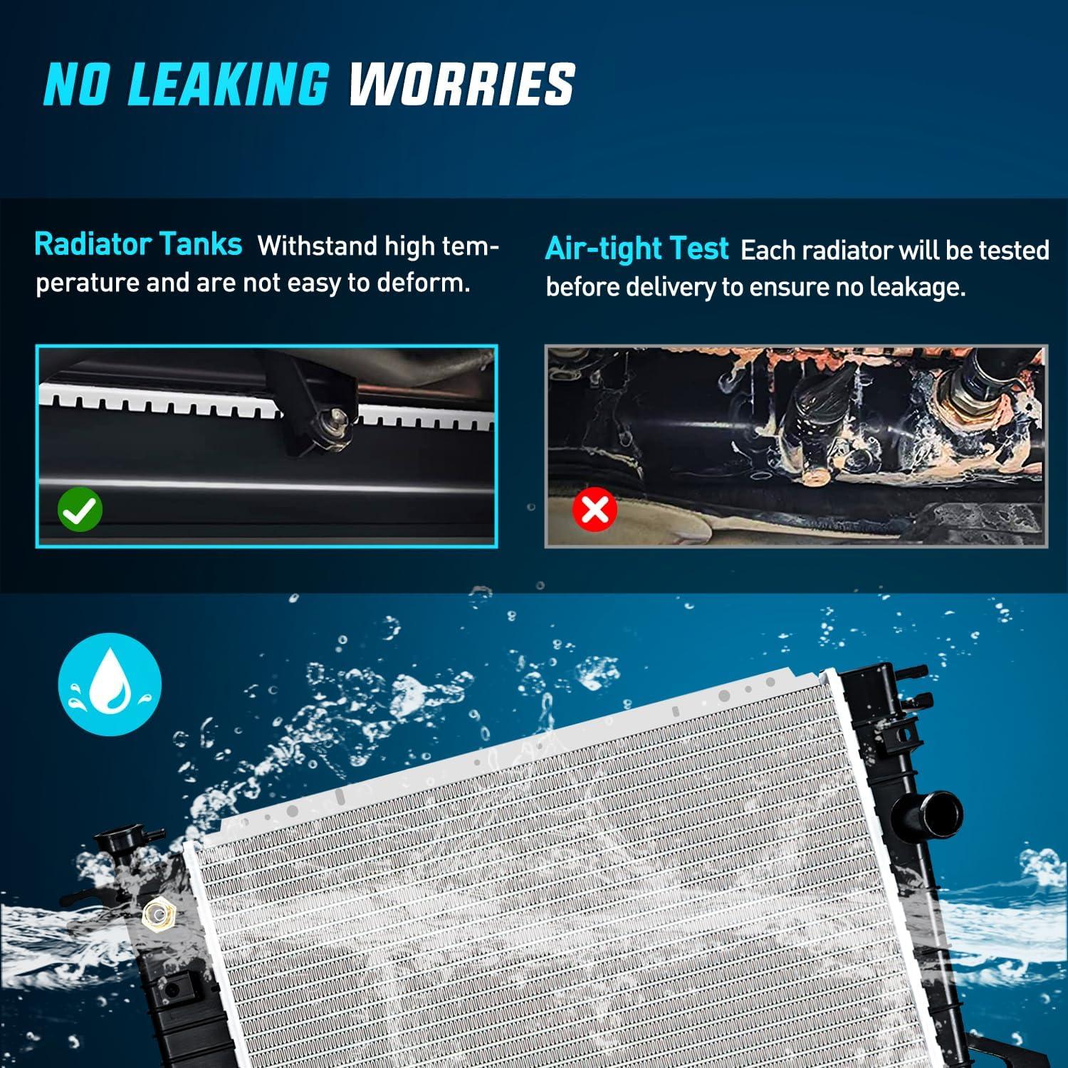 【Performance】Our radiators are 100% leak tested to prevent coolant loss and keep the engine running efficiently. Increases the boiling point of the engine coolant to maintain efficiency. Maintains the pressure of the cooling system to keep the vehicle safe and well sealed.
