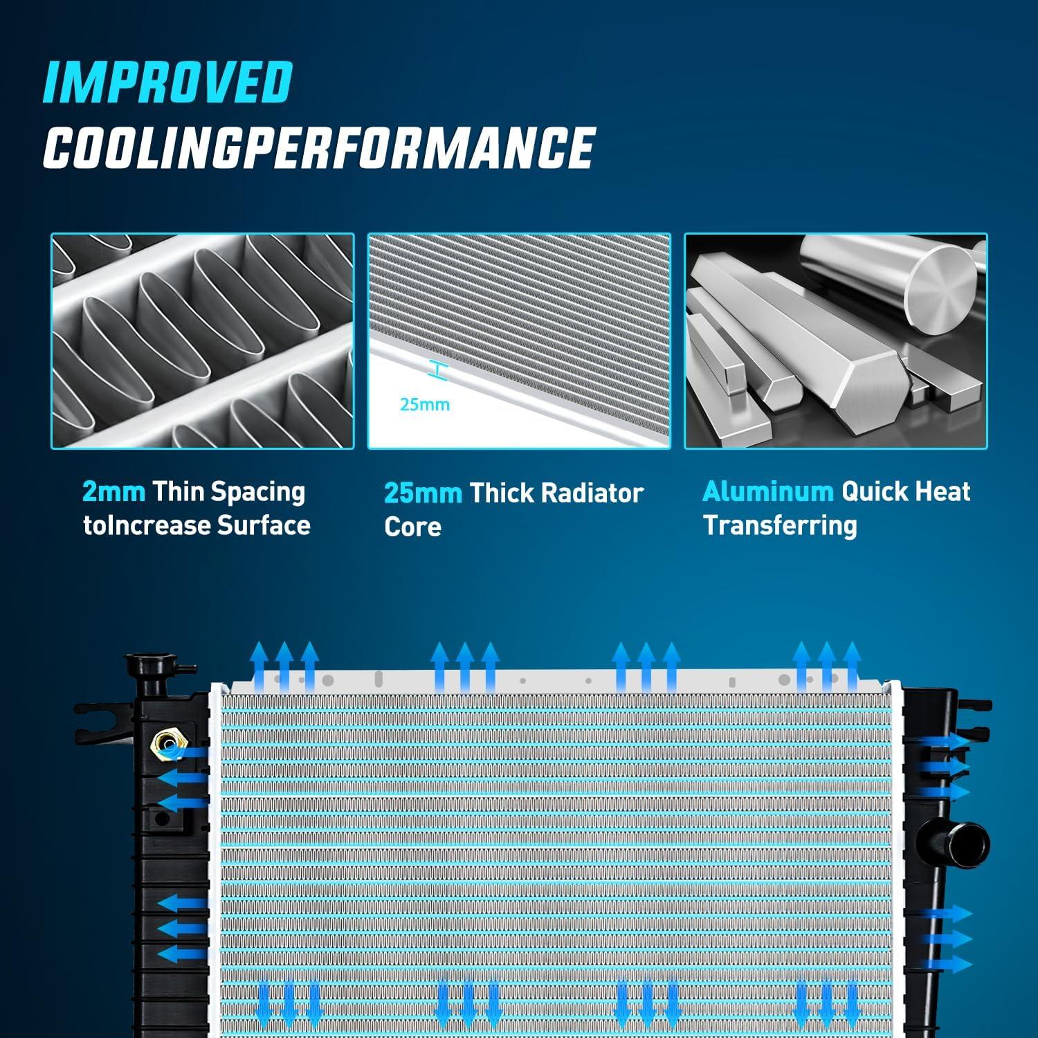 【Premium Quality】Premium grade aluminum tubes and precision folded and louvered aluminum fins ensure optimum cooling efficiency,as the ABS& aluminum core are used in our radiators, which help ensure radiators' longevity.