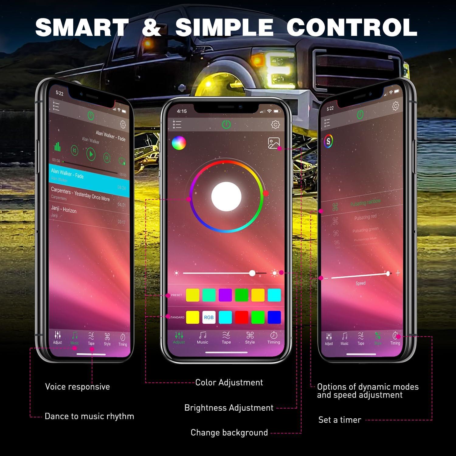 Define your style: offers marvelous lighting modes for your options, include millions of different colors with brightness adjustment, 20 modes of flashing & strobing with speed adjustment, sync with the music rhythm, voice response, and timing function. Add on more fun on your ride