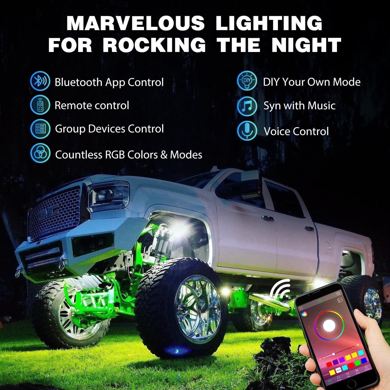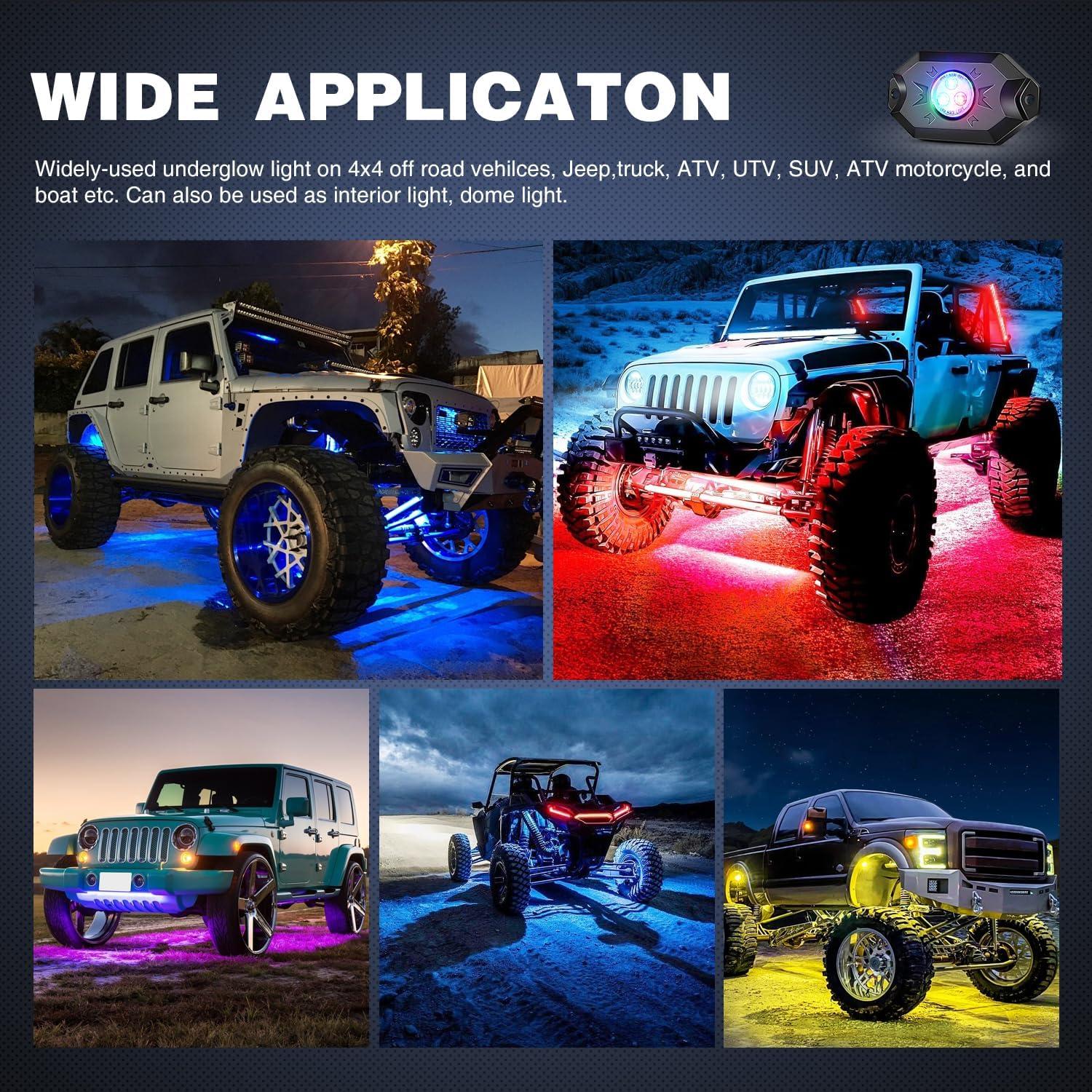 Top bright & durable: employing quality led chips, each light pod outputs 10-14 watts top bright and high intensity RGB colors for exterior truck lighting. Also features of ip68 waterproof and premium aluminum constructed, ensures it a higher performance and a longer lifetime at 50,000 hours (Note: RGB mixture, no pure white light)
