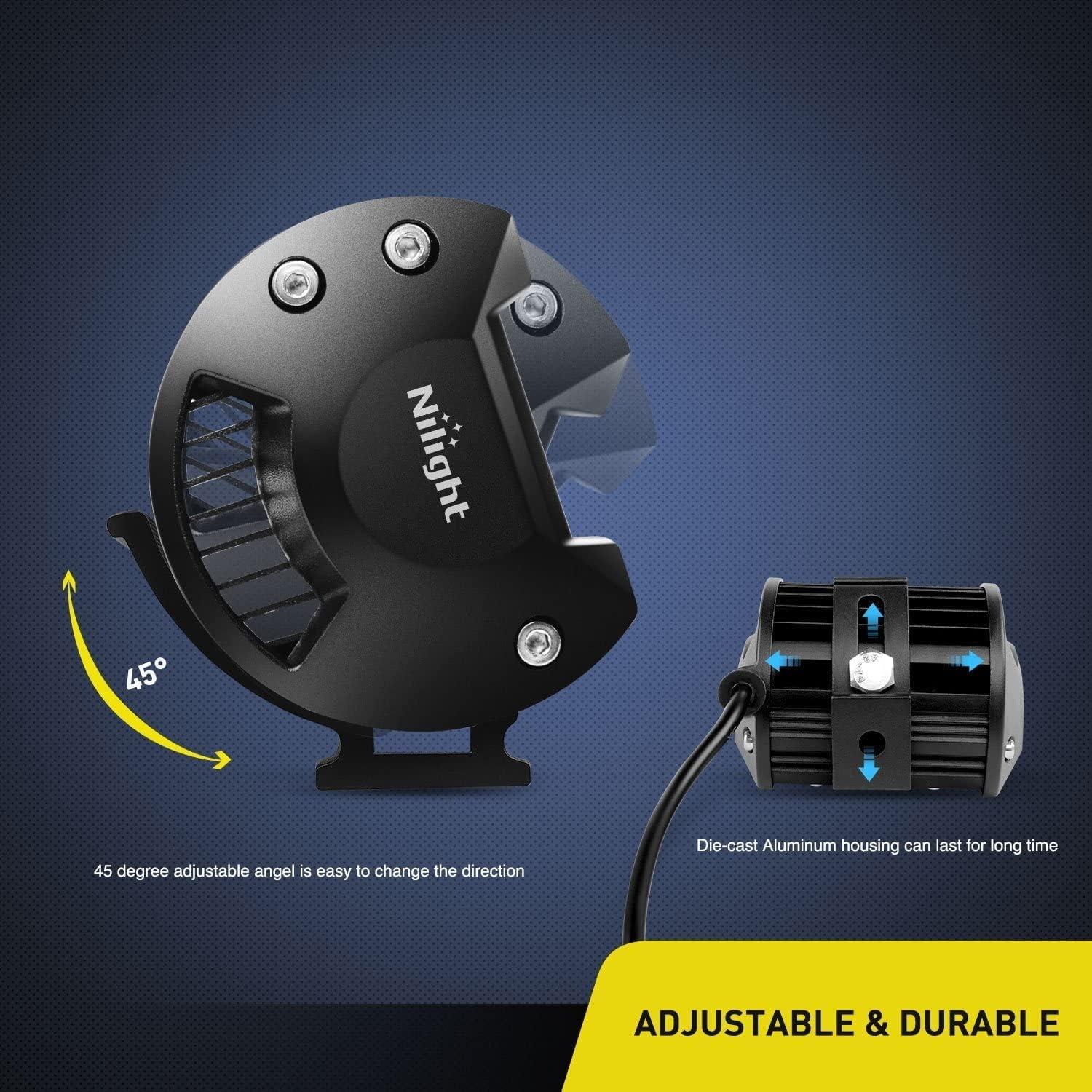 Nilight Side Shooter Light Bar 2 PCS 4.3 Inch Triple Row Spot Flood Combo for Off Road Fog Driving Work Lighting on Truck SUV ATV UTV(White 2PCS with Wiring Harness)