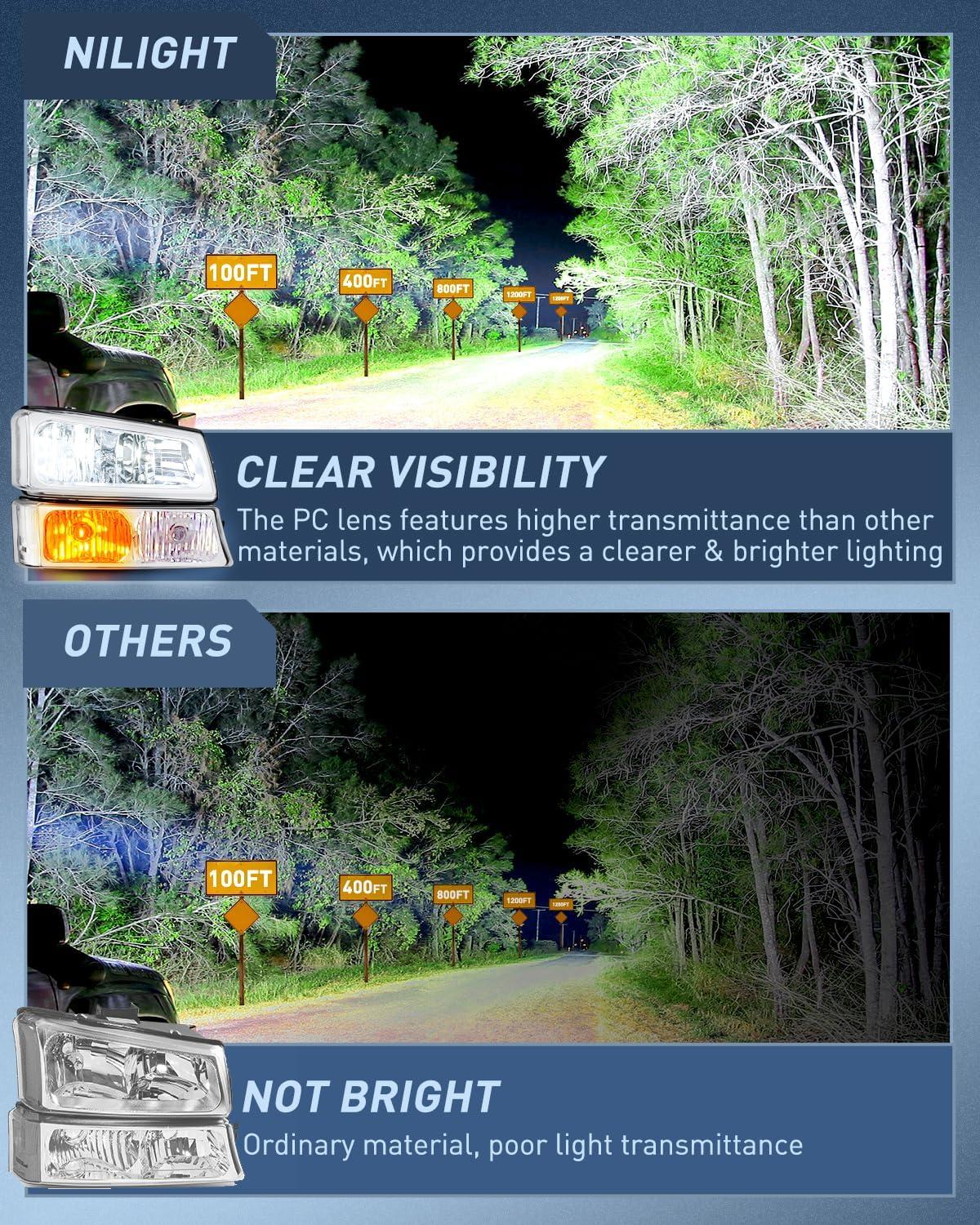 Nilight Taillight Assembly Compatible with 2003 2004 2005 2006 Chevy Silverado 1500 1500HD 2500 2500HD 3500 2007 Chevrolet Classic Incandescent Type Upgrade LED Tube Tail Lights Rear Brake Lamps(Chrome Housing Amber Reflector + Taillight)