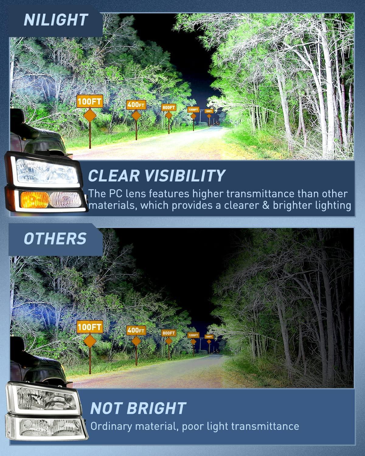 Nilight Taillight Assembly Compatible with 2003 2004 2005 2006 Chevy Silverado 1500 1500HD 2500 2500HD 3500 2007 Chevrolet Classic Incandescent Type Upgrade LED Tube Tail Lights Rear Brake Lamps(Smoke Chrome Housing + Amber Reflector DRL)