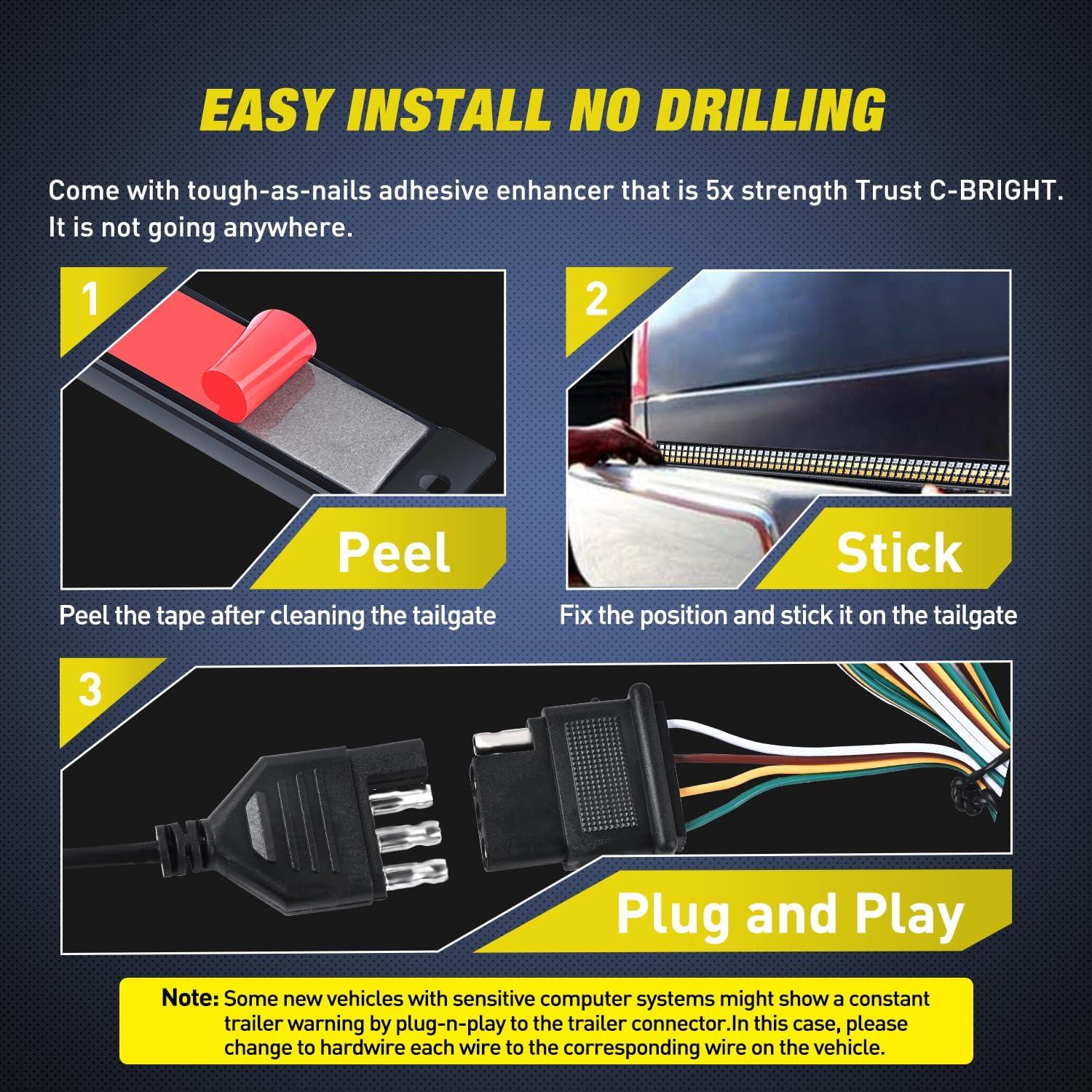 Easy & Quick Installation: No need to drill, just peel and stick, standard 4-pin flat connector plug and play. Come with a 4-Way Flat Connector Wire, you can also hardwired it and use the additional mounts and screws for extra secure, no worries of falling off