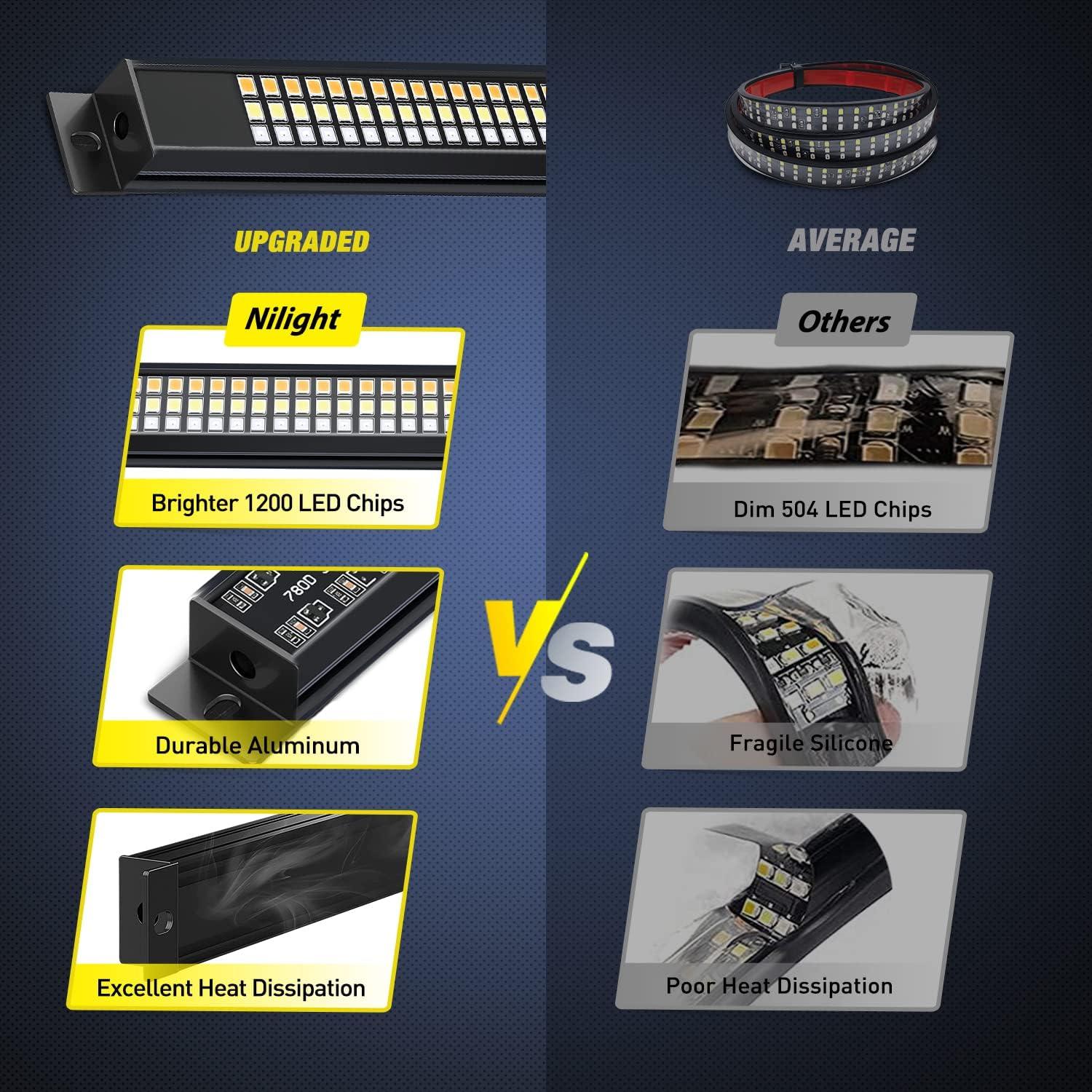 Nilight Truck Tailgate Light Strip 48″ Aluminum Frame Triple Row 780 LED Strip with Red Running Brake Lights White Reverse Amber Sequential Turn Signals Strobe Lights,2 Years Warranty(60″ Aluminum Frame LED Strip)