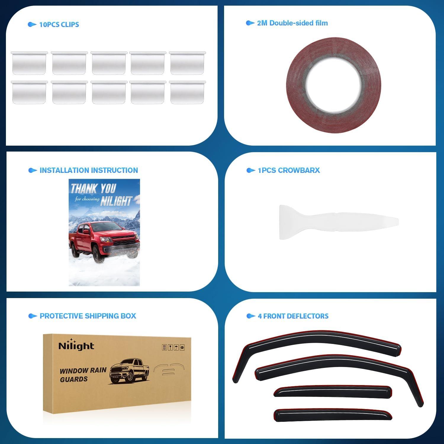 Nilight Window Rain Guards Smoke Tint, Car Window Shade for Rain/Snow, Reduce Wind Noise, Car Wash Safe(Chevy Colorado 2015-2022 Crew Cab)