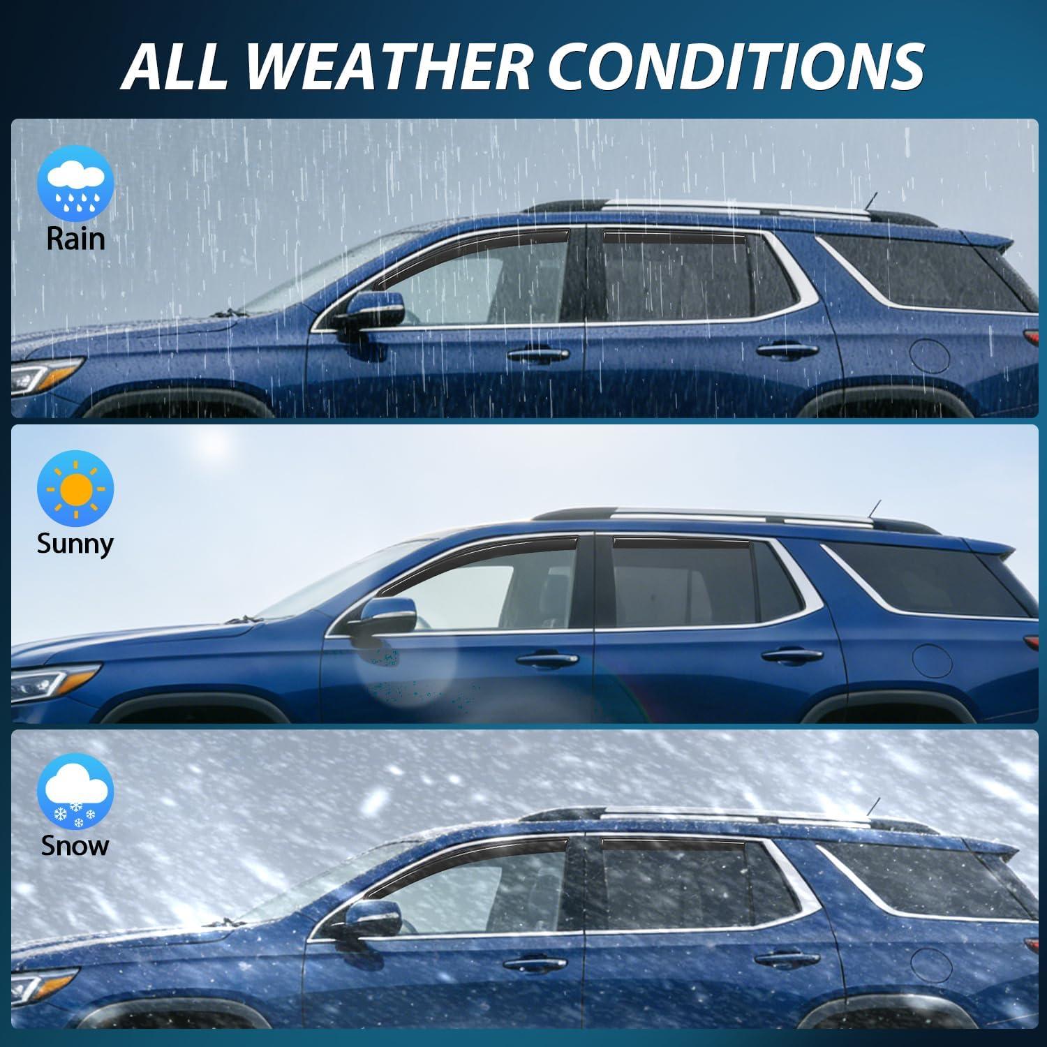 PREMIUM MATERIAL: Made from high-impact, shatter-resistant acrylic, these smoke rain guards resist bending, cracking, and breaking. Designed to reduce wind noise, help block rain intrusion, and allow fresh air circulation for daily driving, highway use, and all-weather conditions